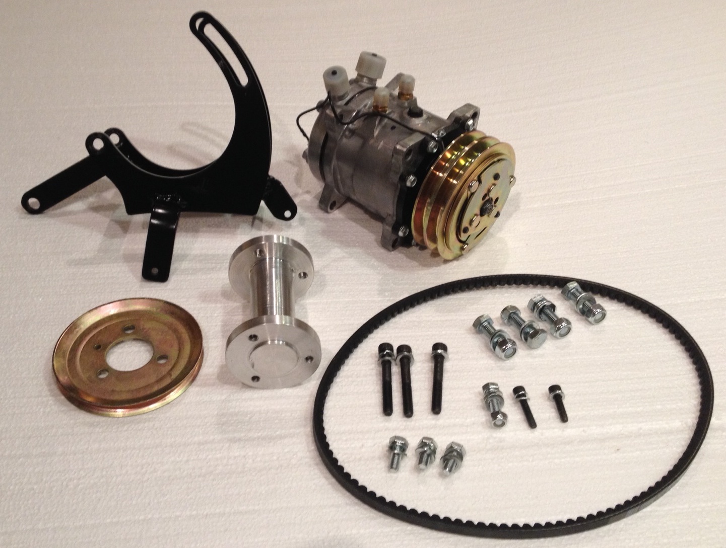 I'm offering for sale a complete kit in order to mount an A/C compressor on top of the motor which requires no cutting to the engine shelf. I've been running a similar setup for some time with good results. (See this thread here : http://www.914world.com/bbs2/index.php?showtopic=192917) The compressor mounts directly to a non-smog engine fan shroud with no cutting or drilling.