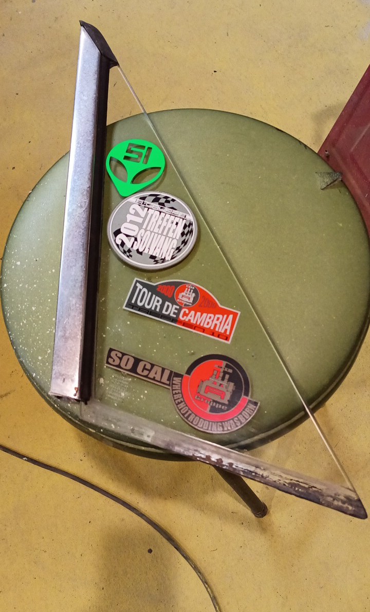 (IMG:style_emoticons/default/sad.gif) Some may remember I posted about the guy that crashed the car. We became friends since I ended up with it. I pulled the triangle window with the SoCal stickers I was planning on sending them to Rocky.