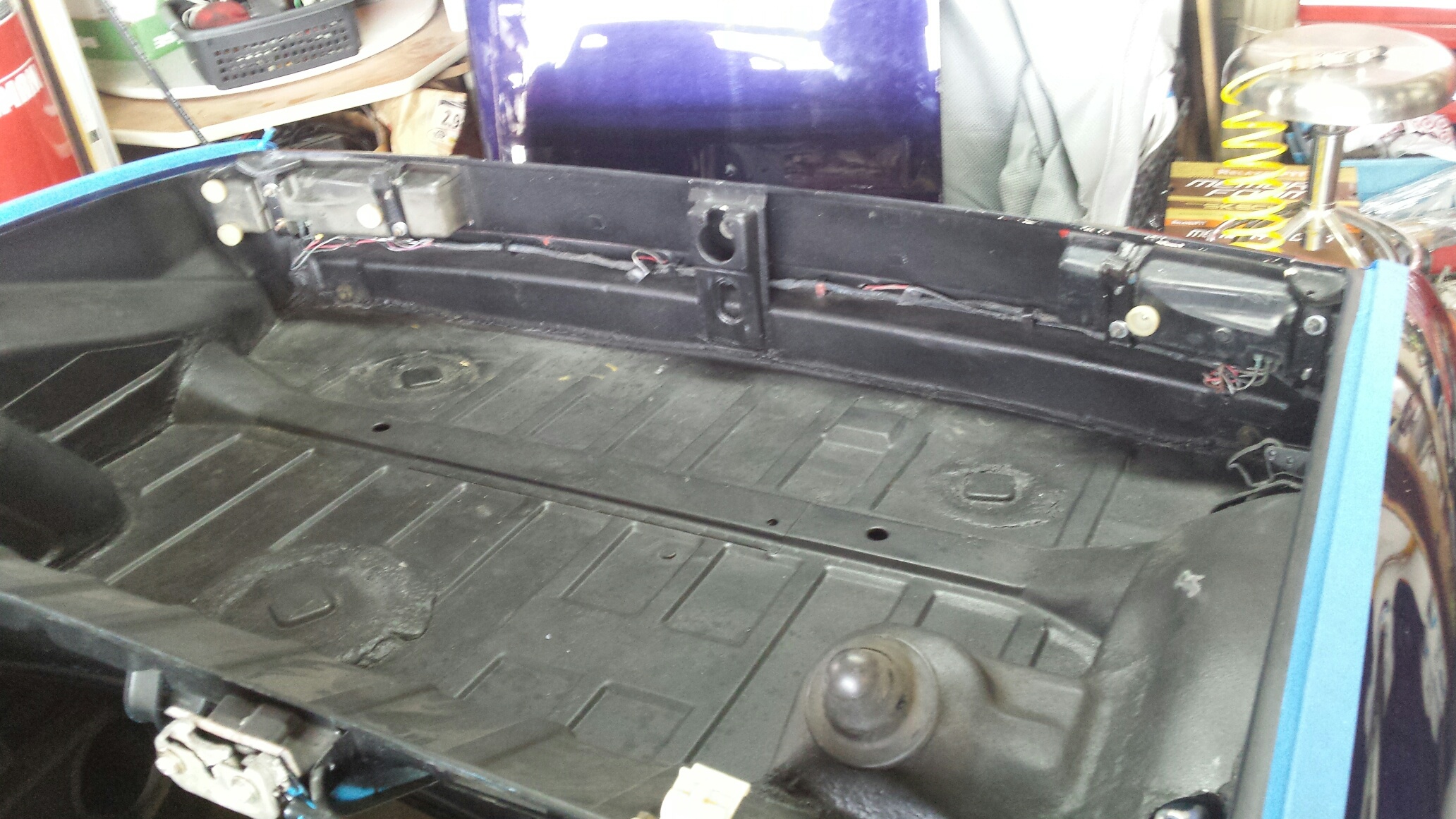 While I was untangling and rerouting the rear harness into the trunks I discovered the drive side trunk hinge mount has torn loose.