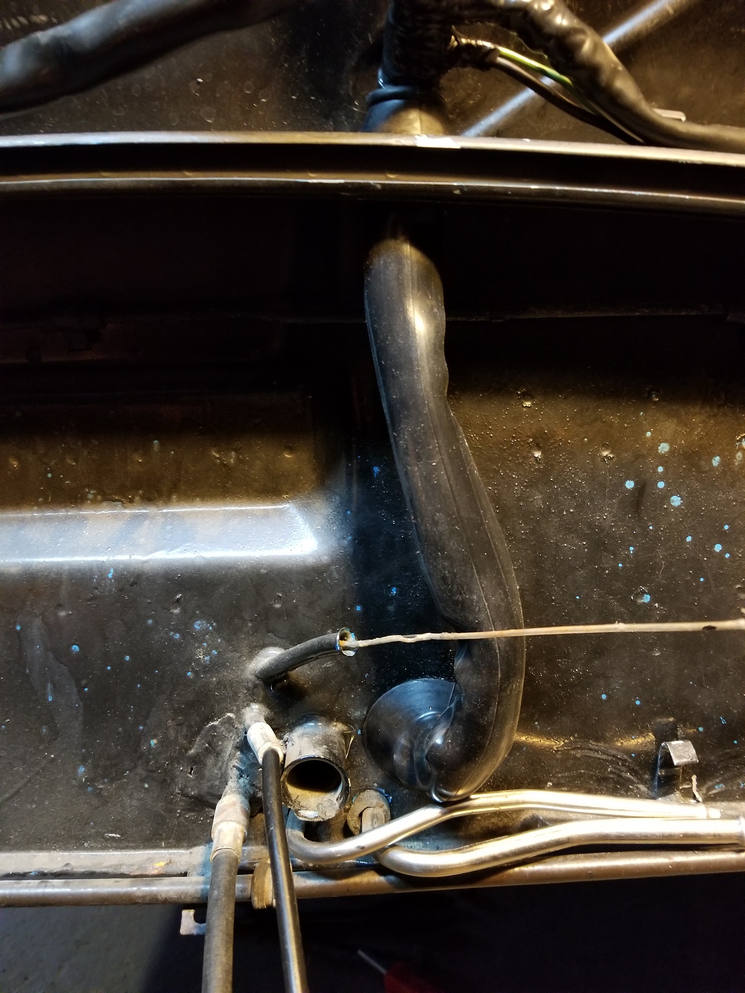 There of course were lots of things that kept from working on that were completely out of my control. Well that is my story and I am sticking to it. At any rate I have actually made some progress on it. A while back I was continuing on the wiring repairs I last posted on. Cleaned up the harness in the front trunk and straightened out the installation of the stainless fuel lines. Then I moved on to the wiring harness in the engine compartment. There I found some very poor repairers and melted wires, quite a mess and not something I wanted to risk coming back to bite me. I had previously bought a harness but it turned out to be a 70 or 71 harness not 72. Since I had already fixed the harness in the front trunk and passenger compartment I decide I would do the unthinkable. I am splicing the rear half of a 75 harness into my 72. I know there will be some challenges in this but I am OK with wiring. I cleaned up the rear portion of the 75 harness, repaired a couple tail light wires, rewrapped it and made sure the routing through the engine compartment and to the tail light worked. The first issue I ran into was after threading the harness through the engine shelf and through the engine compartment and to the tail lights. When I attempted to put the snorkel through the engine shelf it wouldn't fit. I assumed it was just stiff and it would take a little extra effort. After several hours of extra effort over several days I decided there was something else going on. I did some looking around and figured out that there are 2 different versions of the snorkels, smaller diameter early version and larger diameter late version. As best I can tell the change was around 75, I have seen pictures of 74's with the early smaller snorkel and the larger snorkel I have was from a 75 2.0L. My first thought was to open the whole in the engine shelf but there is not room, I found a picture of a 75/76 and the snorkel goes through the engine shelf a few inches over where the shelf is wider. So I bought a new snorkel from 914rubber and pulled the rear harness half back out of the car, removed the original snorkel and installed the new one. I then reinstalled the rear half harness, routed it through the engine compartment and to the tail lights. Threaded into the passenger compartment and installed the snorkel through the engine shelf and into the firewall. Now I can proceed with splicing the 75 rear half into the 72 front half. Jim |