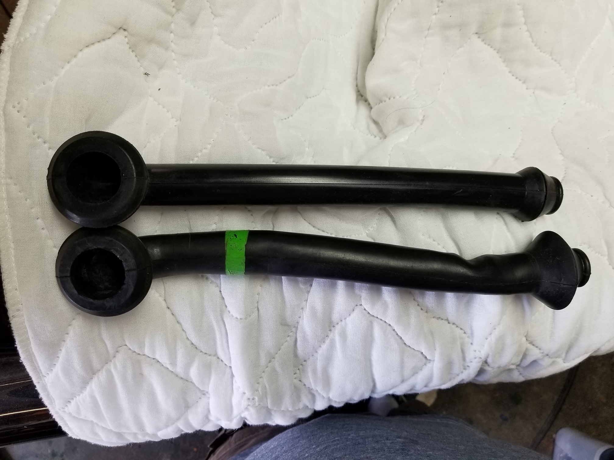 A fairly common failure and the passenger side had been welded before the paint work was down. Which made me wonder why the driver side was not fixed before painting but on closer inspection it looks to me that the driver side tore loose after the paint work was done. I don't own a welder, so I will have to borrow one or take my car to someone that has a welder. I probably know at least a dozen people local to me that have welders I could use and of course McMark is a short drive (or tow) away. Part of the problem with rear trunk hings is the torsion bar spring set up used to support the opened trunk lid. These method puts a lot of load on the hing pivots and I think that contributes to their failure. So I plan to convert to gas struts to lift the rear lid. Then the gas struts carry a large portion of the weight of the rear lid and reduce the load on the hing pivots. So I took out the rear trunk torsion bars in preparation for conversion to gas shocks fr the rear trunk lid, PITA job! Jim |