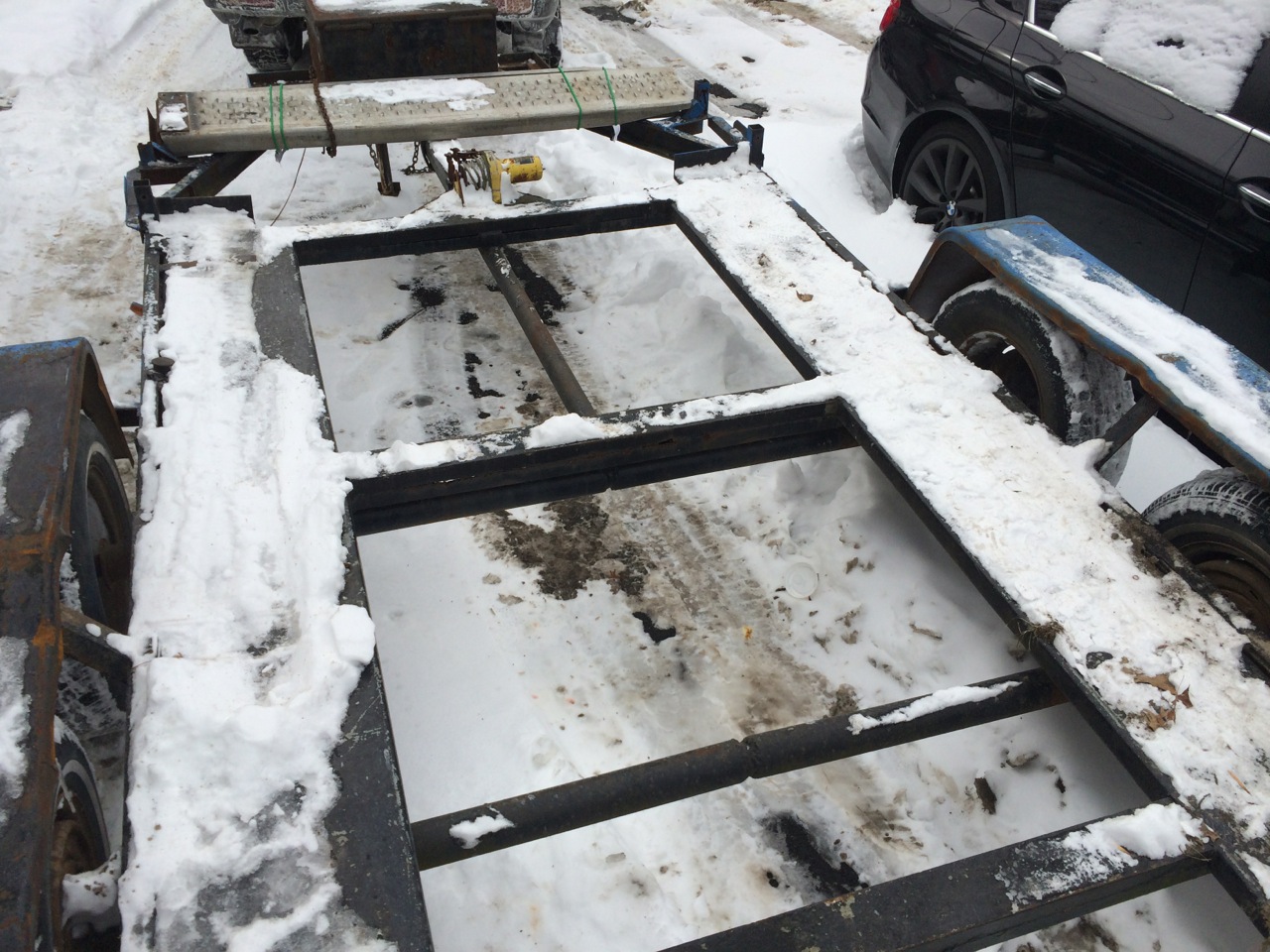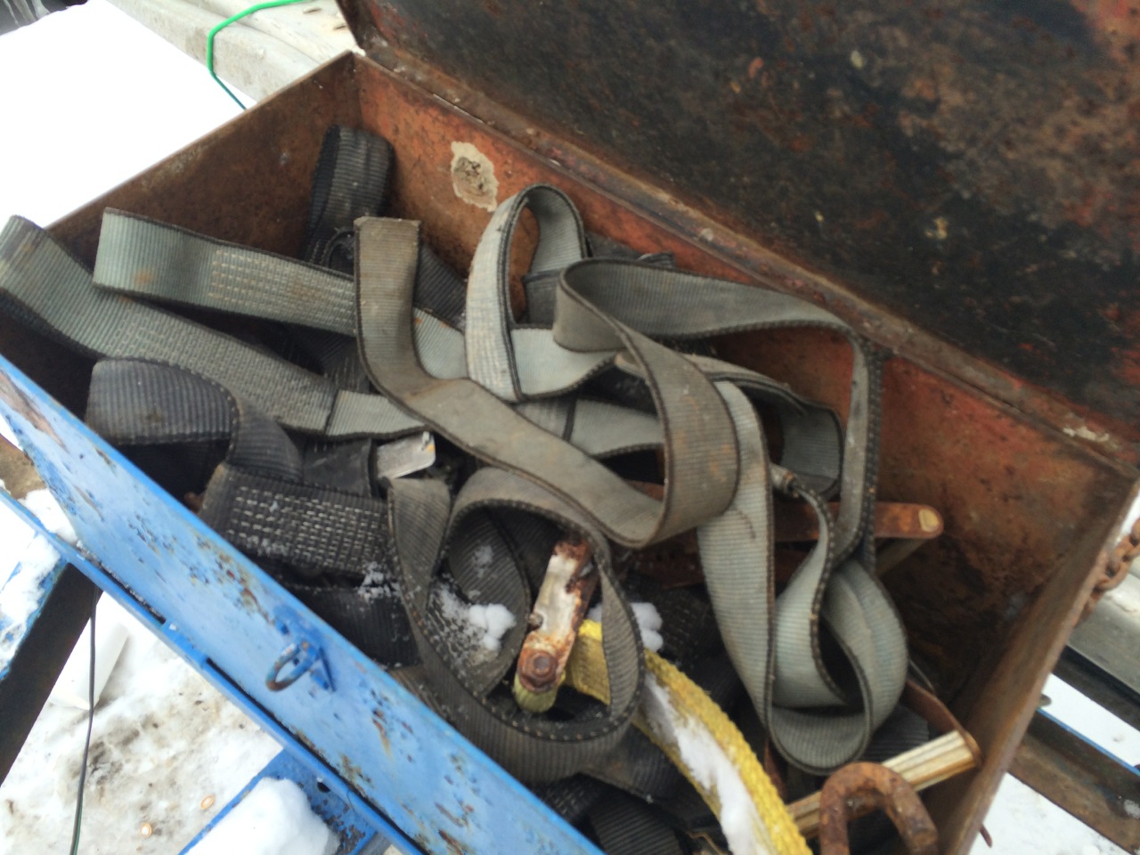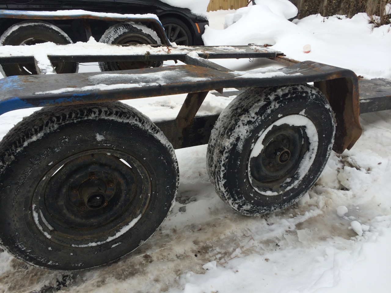 18' Tool-box up front. Dual Axels. Aluminum ramps. 1000lb electric winch. I definitely need new tires. Going to stop by the tire place on the way home and fix that. The PO hadn't ever been able to open the tool box, so I worked on that when I got it home. What'd I find inside? 4 Tire tie-downs and the controls for the winch! After the snow melts a little, I'm going to weld up some of the places that it needs some attention. I may put a wood deck on too. Who knows. One thing is for sure. For $400...I think I did OK! Attached thumbnail(s) |