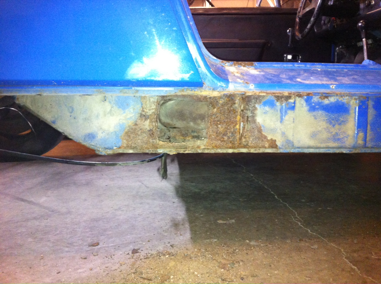 Ya I found a little more rust. I called R.D. to see if they had a short rail section as there is no need to get nuts and cut out the entire rail. I will just do a short patch at the jack point and it will be fine. I'm actually really happy with the floor condition. After the removal of the tar boards there was very little more rust than was showing. There is an odd rust hole at the front of the right foot well with no real reason for it. Very easy fix though. I have a cali front floor section that will fit it right up. I removed the home made battery tray and broken hinge. ![]() ![]() There should be some real progress by the end of the week. |