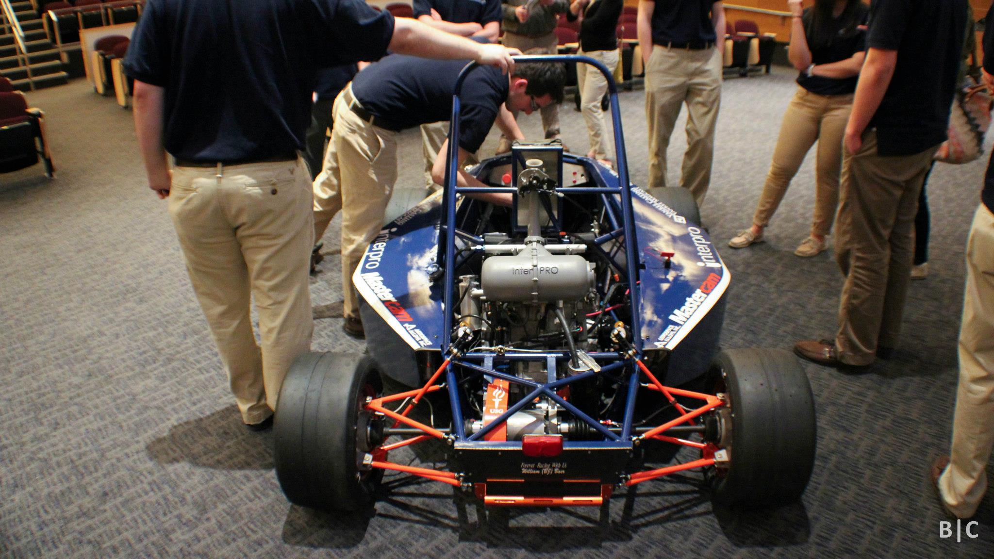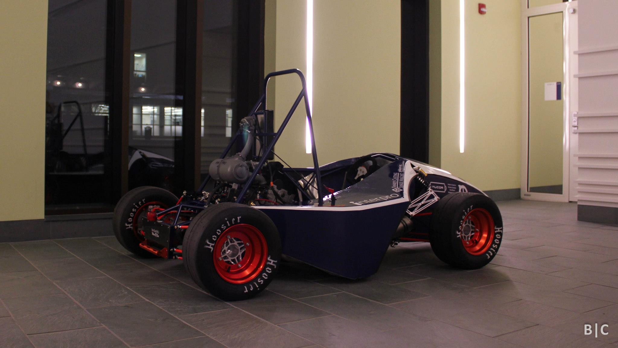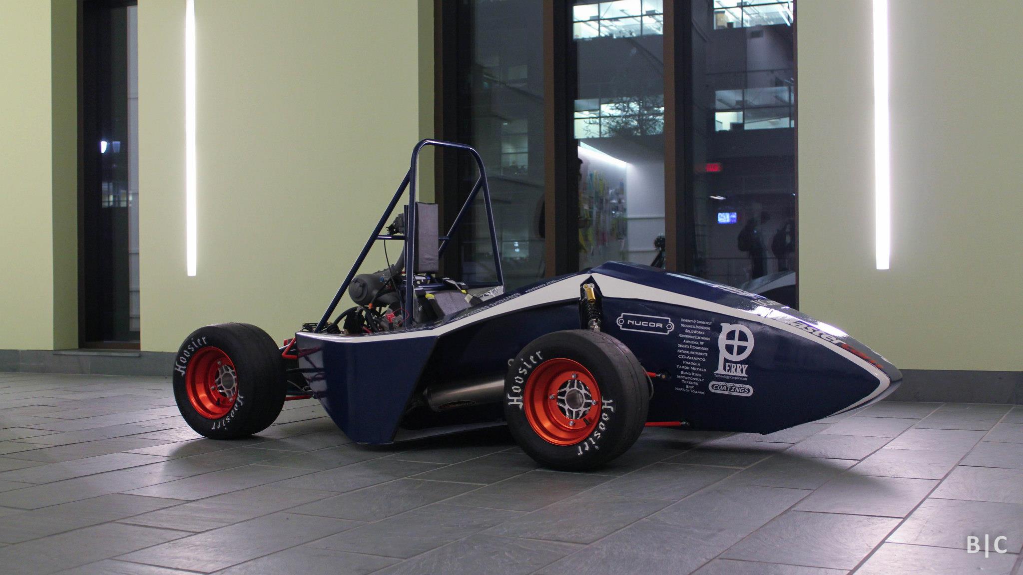 Since it’s been my main non-academic/vocational distraction for the last 7 years, a few OT FSAE pictures are probably warranted. For those who don’t know, FSAE is a college competition in which teams design and build a formula-style racecar for international competition. The cars are new every year, and the teams cycle members about every 3-4 years since they are academically-linked. I personally think it is the best learning experience for future engineers. And now for the sale’s plug: If anyone is interested in donating funds, components, or machining/RPing time, the guys would love to talk to you. 2013 UCONN FSAE Quick Spec. Notes Suspension 10" wheels, 18.5x7.5" tires Cast magnesium uprights 75 and 85 mm deep groove ball bearings Custom "hindle" - Integrated hub, spindle, wheel center(6061-T6) with 4340 RC50 tripod inserts Symmetric hindle design (same for all 4 corners) LSA suspension, push-rod actuated dampers, front ARB 100% Ackermann 30 deg max steering angle Kaz Tech/Cane Creek double-adjustable dampers Brakes Wilwood PS-1 Titon rear-pivot masters Remote-mount bias adjust Drivetrain Semi-custom salisbury differential (built using BMW E30 LSD clutches and ramps) Cast magnesium case, aluminum end caps 15.9# overall weight (including mounting pillow blocks, bearings, sprocket, stub axles, etc.) Custom 4340 tripod stub axles 3 speed transmission, max speed 77.9 mph @ 12 krpm (which has problems eating gears...now drive 2nd and driven 2nd and 6th are cryo'd and shot-peened) Chassis 4130, TIG welded, normalized 1800 ft-lb/degree twist 65# base frame weight, 70# fully loaded (not incl. stressed panels) CFRP stressed floor, firewall, rear bulkhead 435# assembled weight goal (haven't weighed yet) Engine/Controls 2001-2003 GSX-R600 motor 13:1 compression Est. 85 hp @ 9.5 krpm, 45 ft-lb @ 8 krpm Eq. length 4-2-1 headers tuned for 2nd resonant freq. @ 7.5 krpm, 18 ga mild steel, ceramic coated Ti Akropovic muffler Intake tuned for 2nd resonant freq. @ 8.5 krpm, 40% glass-filled nylon SLS 28mm SLS throttle body Performance Electronics PE-3 ECU Texense shift cut (programmed ignition cut in ECU for clutchless shifting) Manual shifter/hand clutch |
