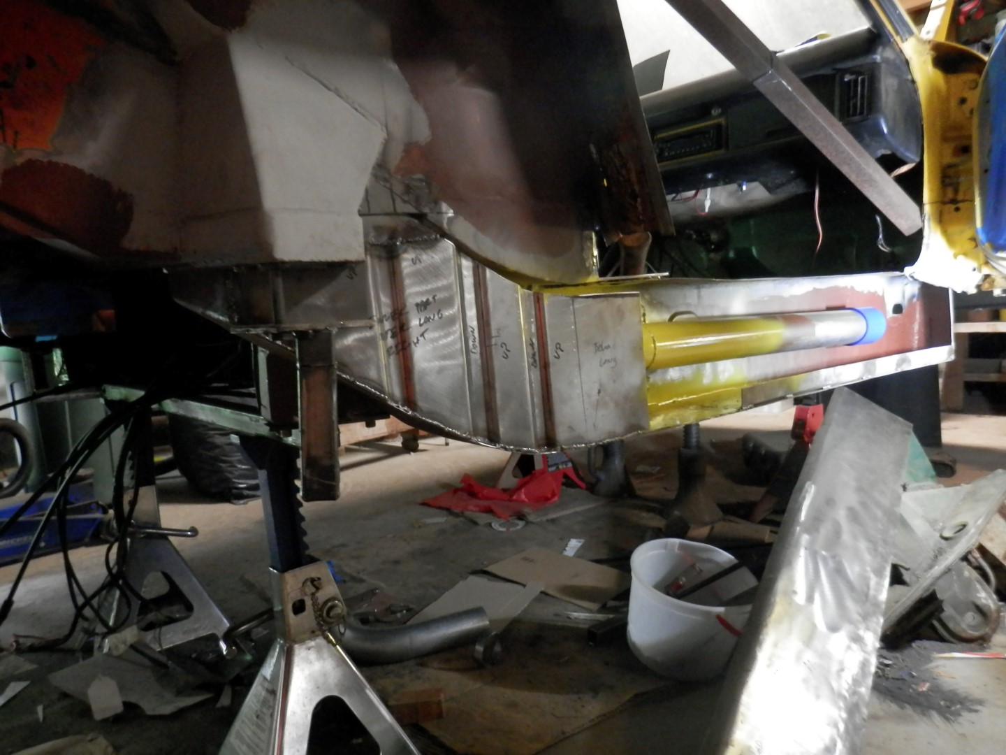 The trailing arm mounts were moved up by about 1.8 inches and completely remade. When I took out the old outer mounts 4/6 bolts snapped so remaking them was altogether easier than drilling out the bolts and retapping. At the same time I remade the longitudinal structure.