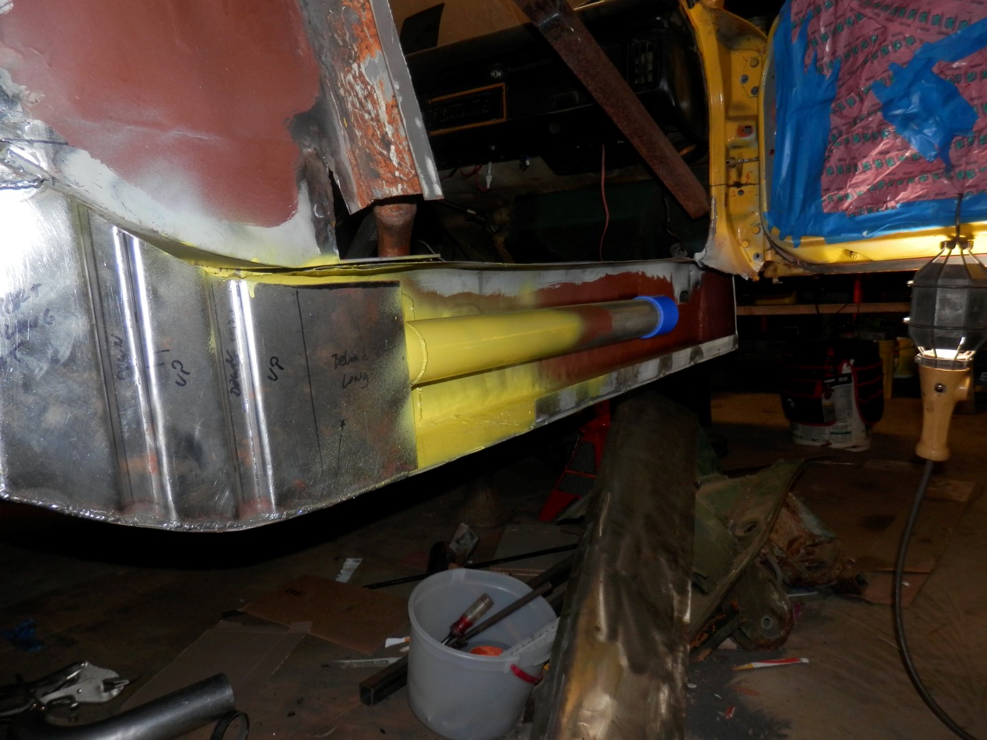 The longs themselves were redesigned and made taller with slightly different metal thicknesses/layering. This was done to increase the vertical moment of inertial and improve the car's bending stiffness in this area. From a design perspective, the new geometry (more or less 0.5" taller with some strategically sized metal thicknesses) results in a 246% bending stiffness improvement over stock with a stiffness/weight efficiency (in terms of moment of inertia/cross-sectional area) of 4.927e3 mm^4/mm^2 vs the stock efficiency of 4.042e3 mm^4/mm^2. Overall weight increase is about 27 pounds. For reference the Engman kit (best as I can tell since I haven't held one) weights 18 pounds and increases stiffness by 168% assuming an OEM long to start with. You'll note that it will still be double layered with the corrugated inner. The insulated heater tube was removed and a solid tube put in its place. This might get used as a wire tray later. Anywhere there are butted seams there is also a backer lap joint. Attached thumbnail(s) |
