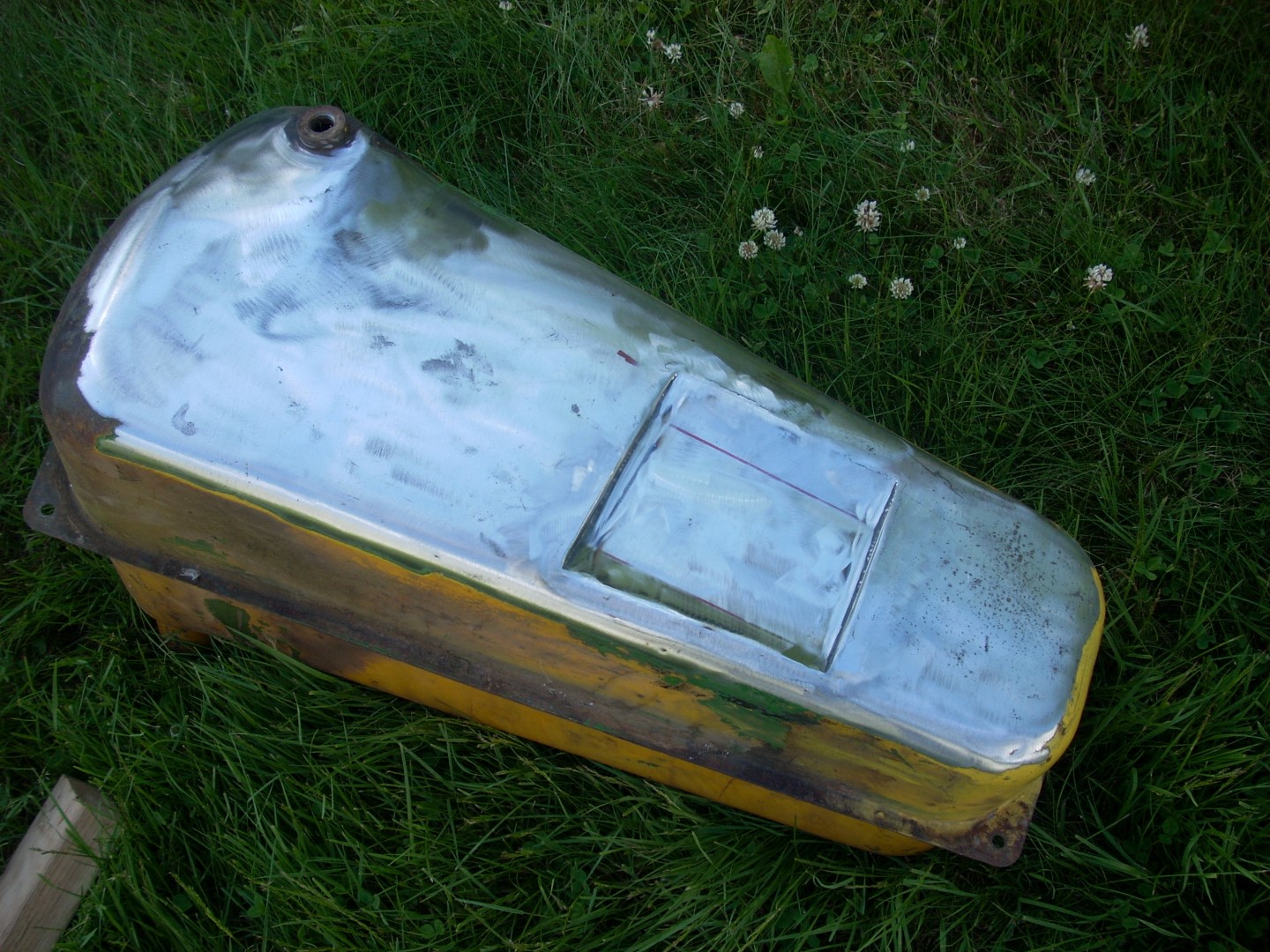 Unfortunately the final product picture is blurry, but I think you can get the idea. I just found the last picture and thought it was cool so I added it. It's of the bottom of the gas tank in a '58 John Deere 420C bulldozer which I clearanced to fit a taller battery for Father's Day. |
