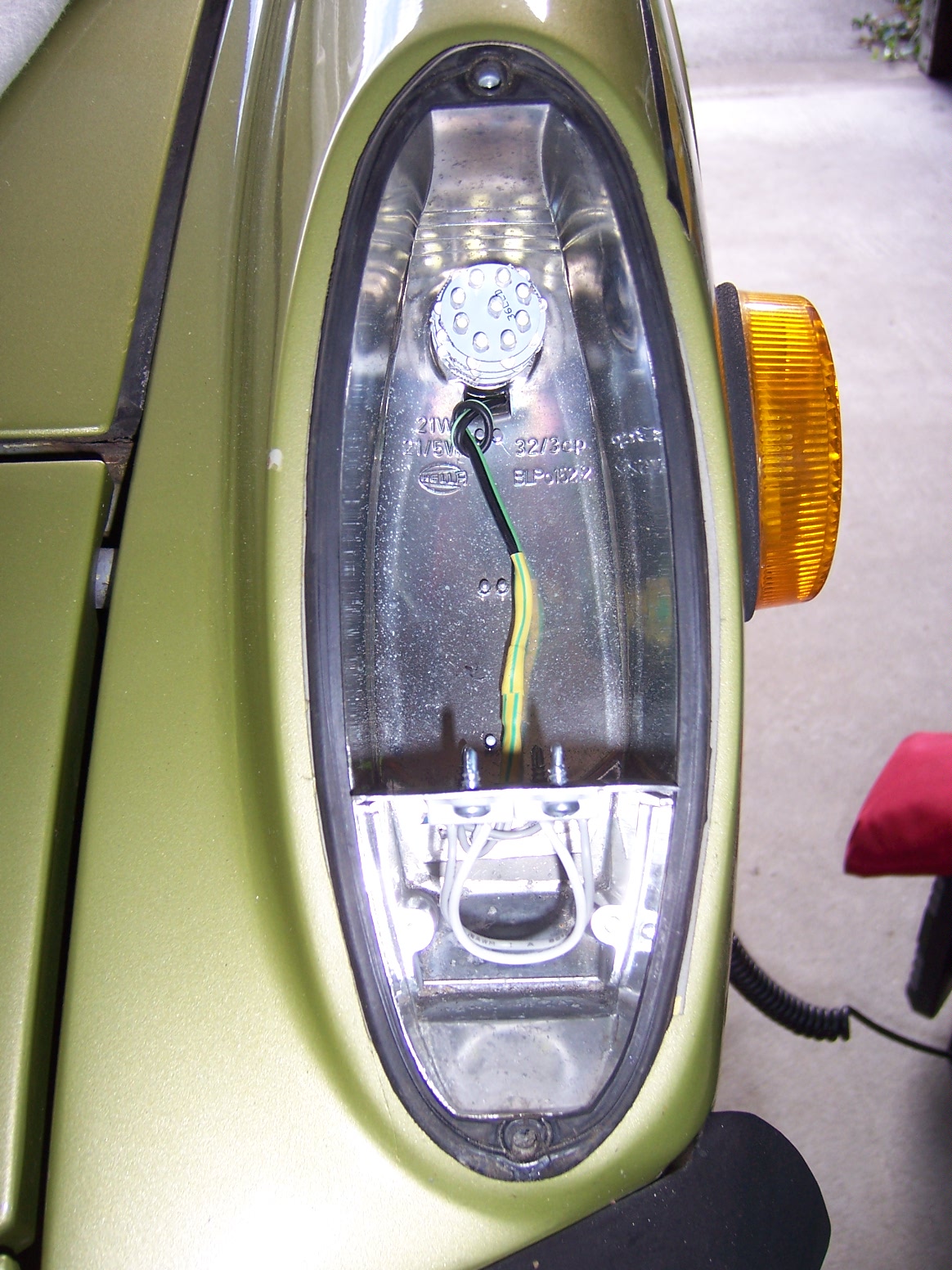 Since our cars are tiny by today's standards, I wanted to alert oncoming traffic, on left and right turns. The added benefit is that these bulbs do not take 35watts to run. The only filament remaining filament bulbs on the car are the four tiny ones for the dash controls, the headlamps, and the license plate bulbs (done and done 1-3-14). |