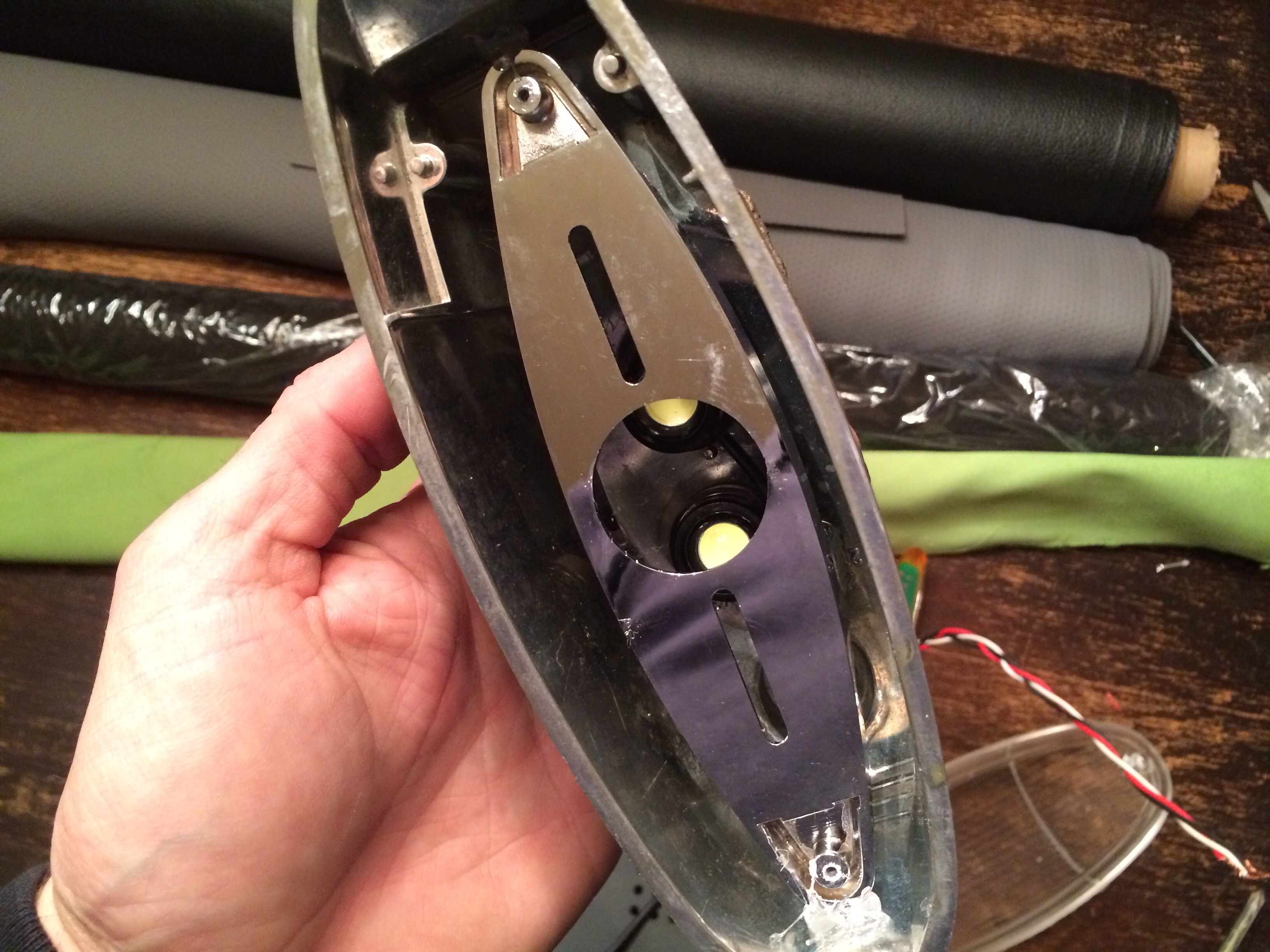 Added 2 white spots behind the light tonight to see if that'd make for a decent DRL idea. You be the judge.