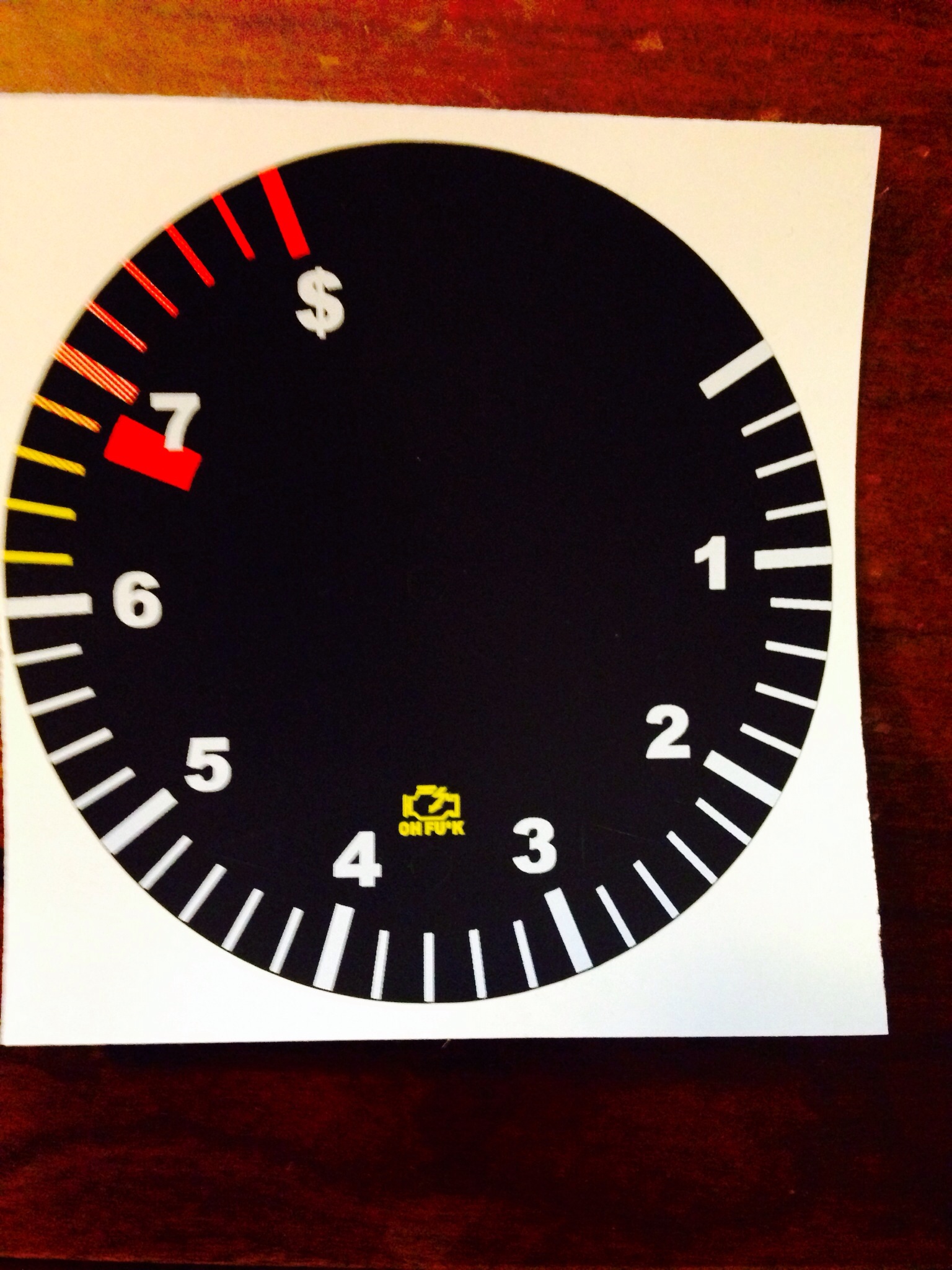 First up Tach and Fuel Combo Gauge. ![]() To me, that font looks a little thin. The font isn't as thick as the ticks, which makes my eyes double-focus to read them. Just a nit-pick, but those look like they'd be a real cool project. Like this? (NOT looking to hijack, just a suggestion.) Attached image(s)