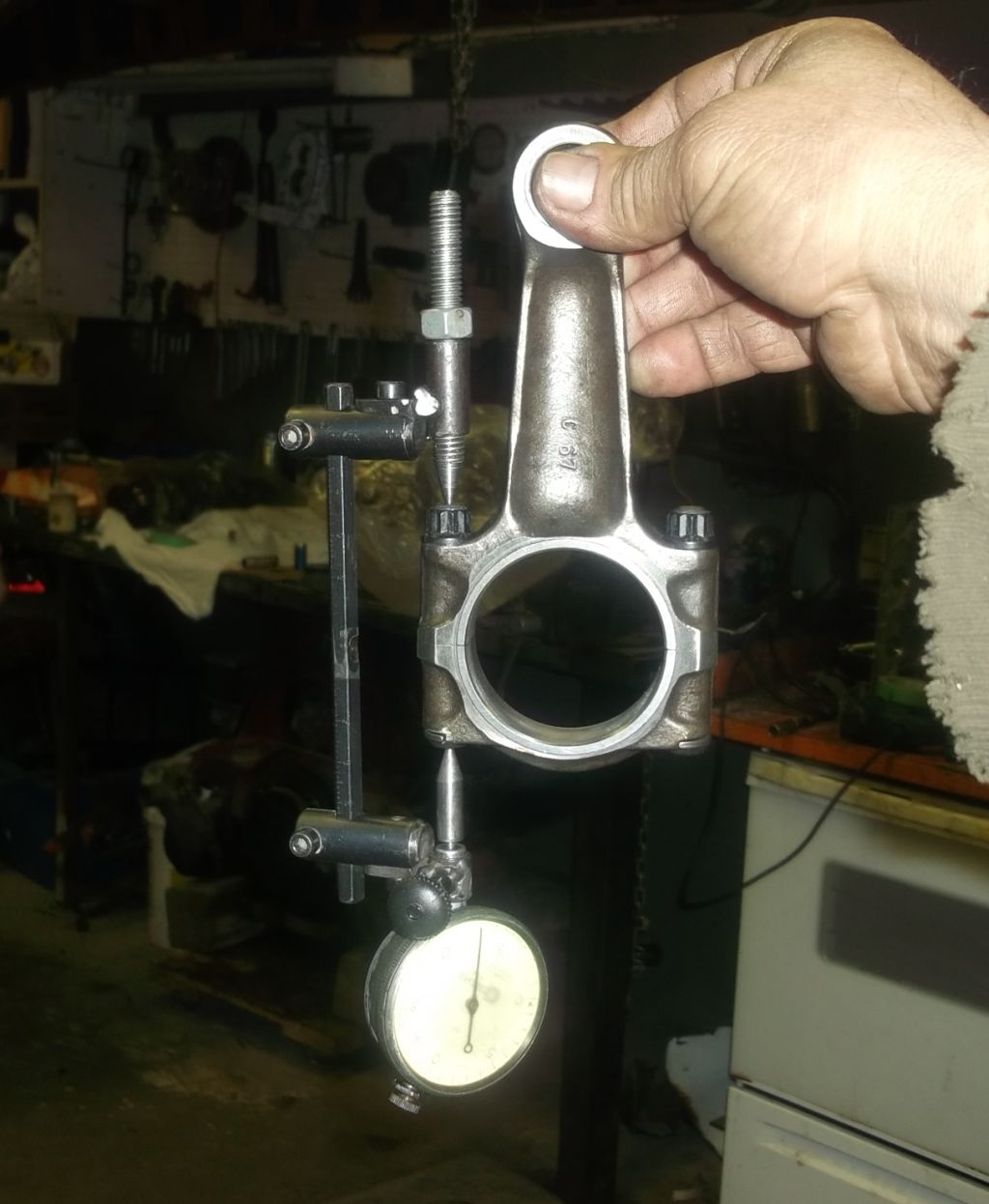 Bolt stretch gauge for the ARP bolts. Homemade of course.... (IMG:style_emoticons/default/biggrin.gif) With ARP bolts you can torque them, but the recommended (for 3.0 rod bolts) is measuring for .010" of stretch. Note I checked them with a torque wrench, the ARP recommended torque was .010 stretch. So i wouldn't be afraid to use the torque if one didn't have a strech gauge. Attached thumbnail(s) Attached image(s)