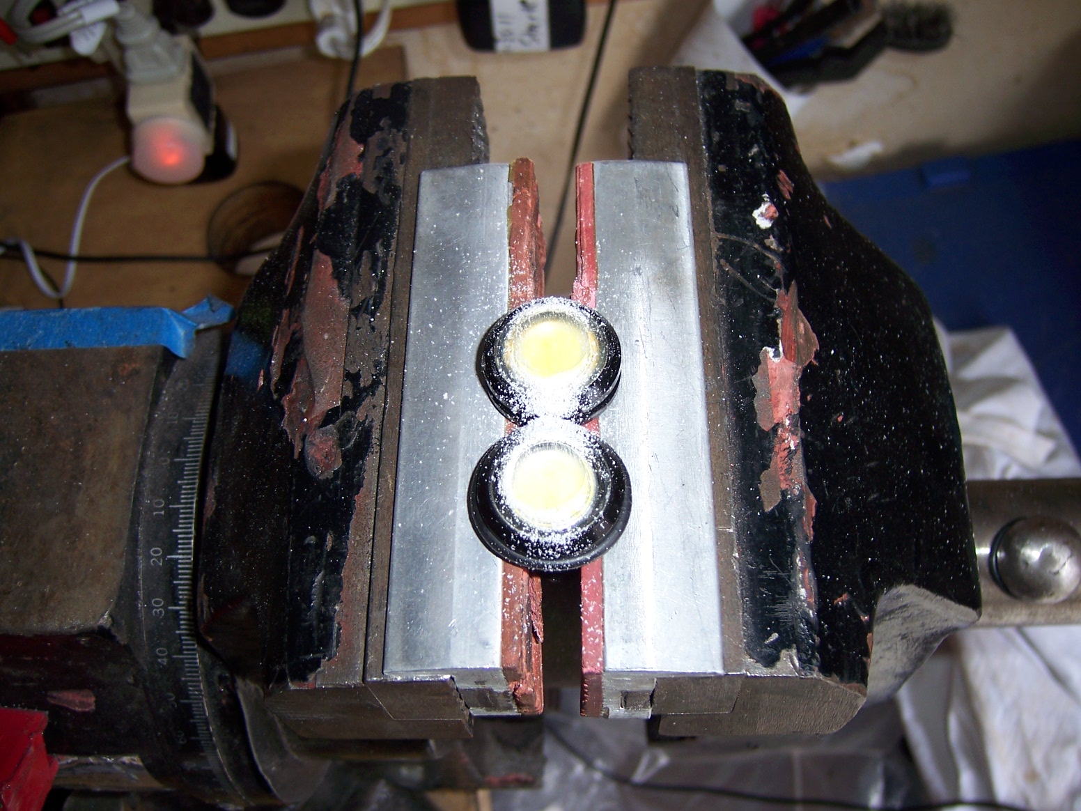 http://www.914world.com/bbs2/index.php?showtopic=227721 The best thing about it, I can restore to OEM, as long as I don't lose the bulb shield that I had to remove from the reflector lamp. Here the parts used 1. 90mm SMD angel eye from eBay ($14). The SMDs are type 5050, not the more common 3528 SMDS. (Based on my 2/19/14 posting below, I surmise 3528 SMDs will still yield a very good result.) 2. The eagle eyes were from Banggood.com. ($6) Both items were shipped from China. so these parts took about a month to acquire. Had to file down the front of the eagle eye to fit flush against fog lamp lens. (In hindsight, I could have added some clear 1/4" clear square plexigas piping instead of filing down the "cornea" of the eagle eye so that the eye laid flat against the back of the fog lense) 3. The mounting platform was was a 4" pre-cut 1/8" disc of plexiglas from the local plastic store and it cost about $5 for the pair. Total cost of this project is $25 bucks. Attached angel eye to the disc with zip ties. The only tricky part once the reflector housing shield was removed, was how to ensure the light assembly contraption stayed flush to the glass. For this, I used a coil spring that was placed on the shaft of the eagle eye and it pressed on the most rearward portion of the relector, aka the "retina" of the lamp housing. I applied pressure to the reflector as I re-installed the four tensioning springs. I connected the leads from the eagle eye to the angel eyes in parallel and connected it to the leads that ordinarily contacted the OEM fog bulb, and I basically used push-on connectors to link up the OEM wiring to the SMD LED leads. Basically a coil spring slightly longer than the depth of the reflector housing. I no longer have fog lites, and now the fog light switch serves as a daytime running light switch. I did the headlamp/fog light switch hack which permits the use of the fog lites regardless of whether the headlights are on or off. IMHO, I think it looks pretty cool, and I am not just tooting my own horn. Also awaiting my Euro front lenses, and from the previous thread cited above, I have SMDs lighting up the lower portion of the housing. So whenever the ignition is on, the lower portion of the front signal bucket is lit up with 5050 SMDs. Attached thumbnail(s) |