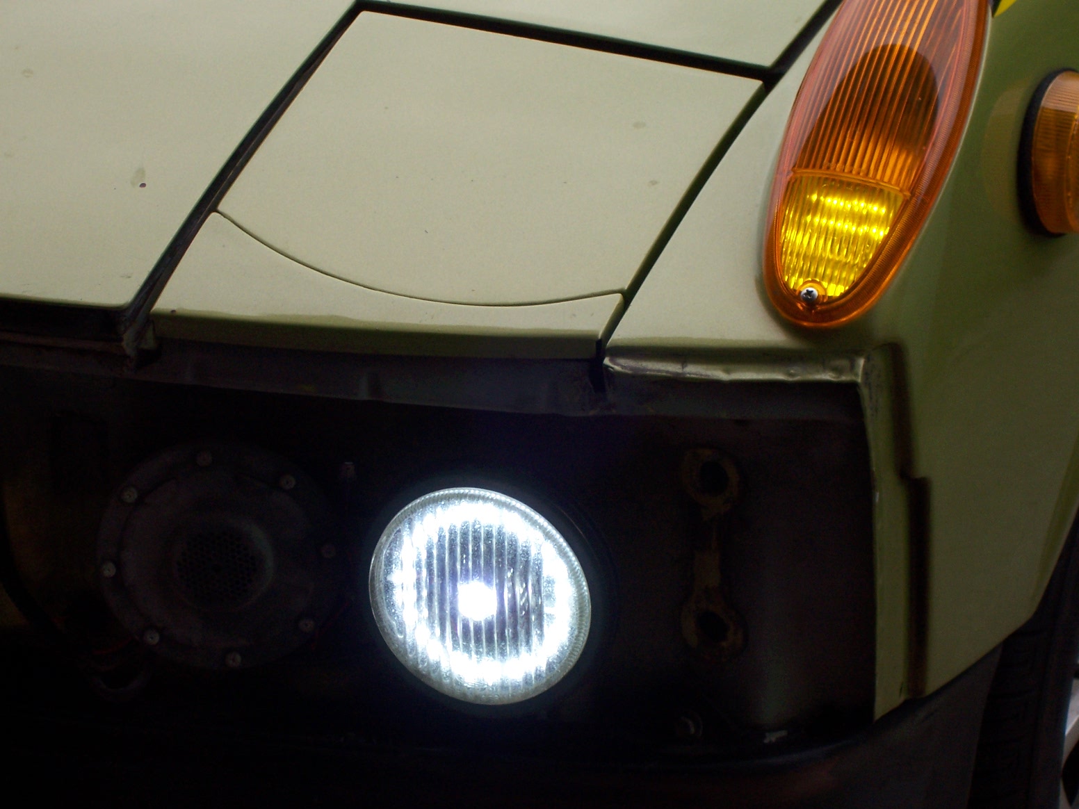 http://www.ebay.com/itm/2x-12V-70mm-2-8-10...%3D141660644547 If I these discs were offered in 2014, then I would have installed those instead, and likely used open cell foam padding or sheet packing foam, to force the disc of LEDs to press against the rear of the fog light lense. Here is my most recent addition of a LED light bar to the top of the fog light grille. Scroll down to Xmas day, Dec 25. These light bars zip tied to the top of the grille is also a pretty simple mod, and in daytime, these light bars are actually so bright, they are really annoying, and readily do the job of DRL for our low slung cars. The wiring of these are a feed from the dashboard, so that when the car is running, the light bars are on. Alternatively, the halo rings of LEDs are controlled by the fog light switch. I do not have any fog lights. that said, if I were going to do the spring method, I just found a vendor on ebay from which I could start collecting the bits: http://www.ebay.com/itm/4-Pcs-3-3-Long-Aju...mQAAOSw0JpV6G5H here's the lite bar update of my mod. http://www.914world.com/bbs2/index.php?sho...774&st=7060 given the mods above, I would try that bar lite install first. It only requires you to remove and zip tie the light bar to the grill. once you see them on, you will realize you do not need to do surgery on the OEM fogs. |