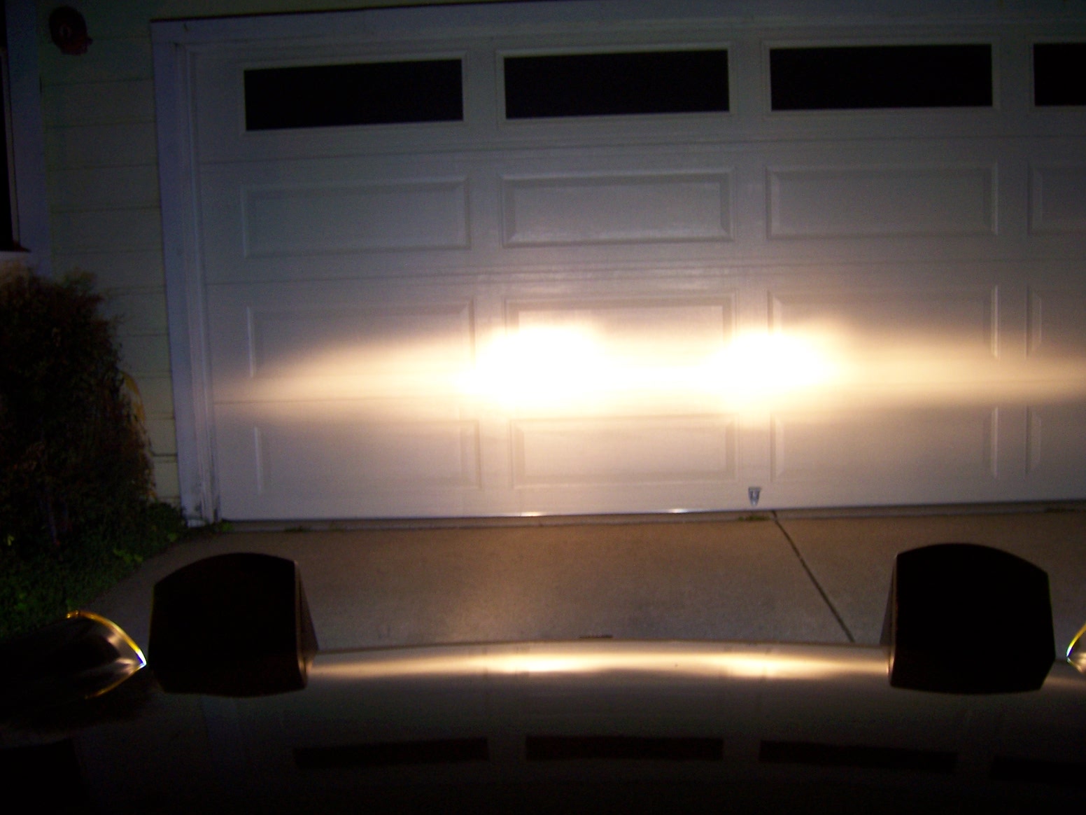 As I was driving tonight, I saw every tom dick and harry having their fogs on, and here in the bay area, its clear with visibility for a mile. you get the message. Once I turn on my fogs, it blazes the 6000K spectrum with as much brillance as everyone else needlessly using theirs. Let me say this, when I turn these on, they announce my presence. I also got my front euro signal lenses from AutoAtlanta today, so my SMDs mod in the signal housings worked out really well. The modified fog lights should serve well as daytime running lights and will definitely make me seen at night when I am coming up behind other cars. top pic shows headlights only, no camera flash next down shows headlights plus SMDs, no camera flash next down shows the SMDs only, no camera flash fourth pic down shows the blaze, no camera flash fifth pic down shows the blaze, with camera flash on Since I did not take pics of the illumination with the OEM fogs, anyone out there can turn theirs on from about 20 feet back from their garage door and make their own comparison. Attached thumbnail(s) |