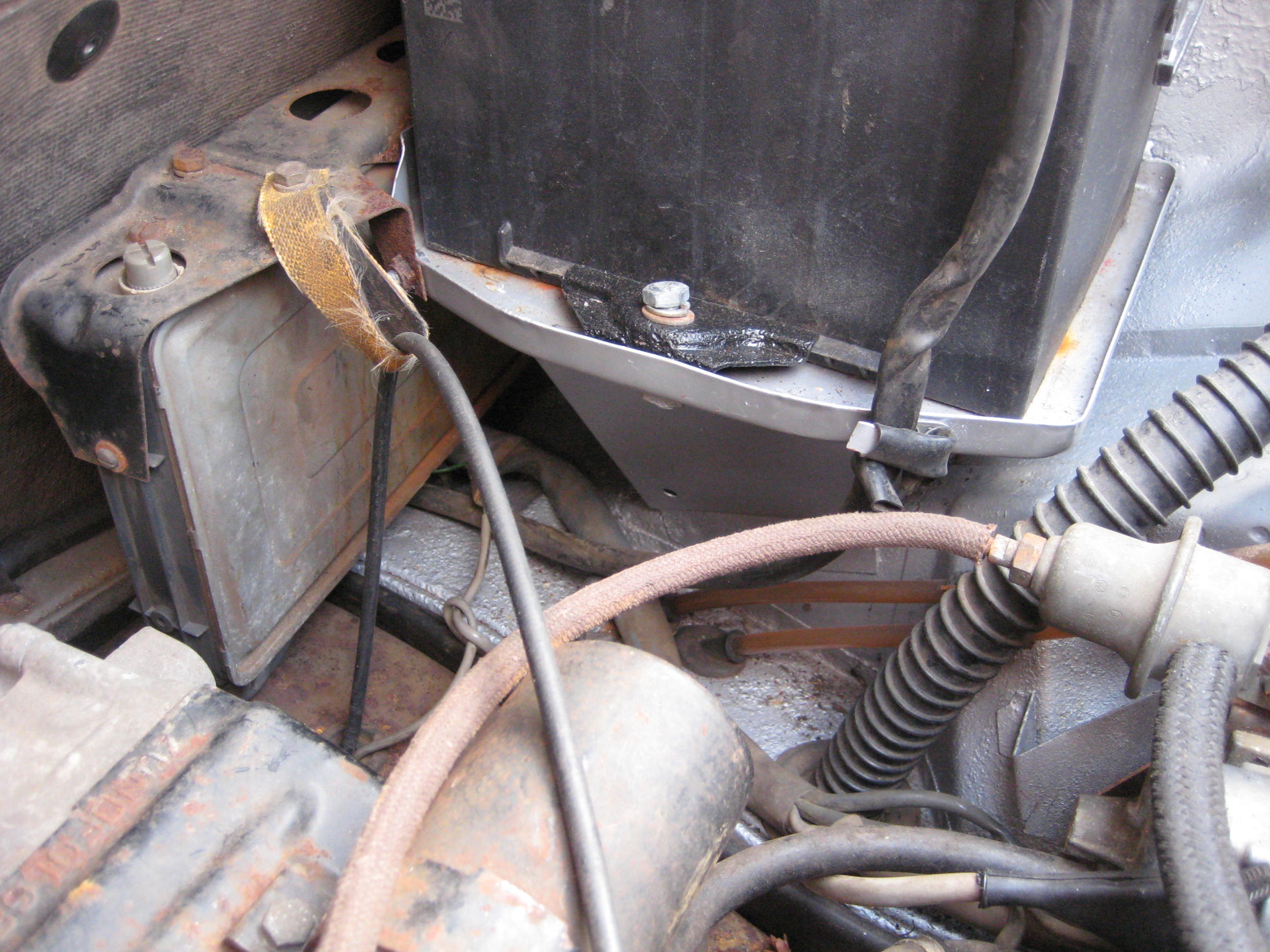 62,000 mi. Orig. keys, 1 red 1 black, all locks work. Service records, fuel consumption records. Tool kit. Owners manual, service book, dealers business card, etc.etc. Spare tire / wheel never used. I repaint, common for metallic paints of the era. Very solid rust free chassis. Drivers side jack receiver replaced, passenger side receiver original but showing evidence of rust from inside. Battery tray replaced. Hell hole area cleaned, wire brushed and painted with Rustoleum. Weep hole enlarged to aid drainage. Original radio. Original interior light. Near perfect upholstery / carpet. This car will be a perfect daily driver or a great start to take it as far as you like. There are many small issues with the paint. The bumpers and tops look good but they'tr not great. The tires are old, only two match. Since getting the car I've flushed and bled the brakes and replaced the brake hoses. I've exercised the calipers and adjuster the rear pads. I've replaced the points and adjusted dwell and timing. The alt. belt has been replaced the oil and filter were changed as well. Valves were adjusted. The heads and the area inside the valve covers is beautifully clean and shiny. Fuel delivery and return hoses replaced. Fuel filter replaced along with all hoses in fuel pump area. Although the windshield is original it has a 2" crack across the lower corner on the drivers side. The car started first time every time through a very cold winter here. It has a nice cold start idle that drops as it warms up. I would drive it anywhere It has been off the road since 1999. Car is in New Jersey $ 9,250 Rory rgalla9146@aol.com Oh yeah, stainless heater boxes and original "banana " muffler too ! Attached thumbnail(s) |