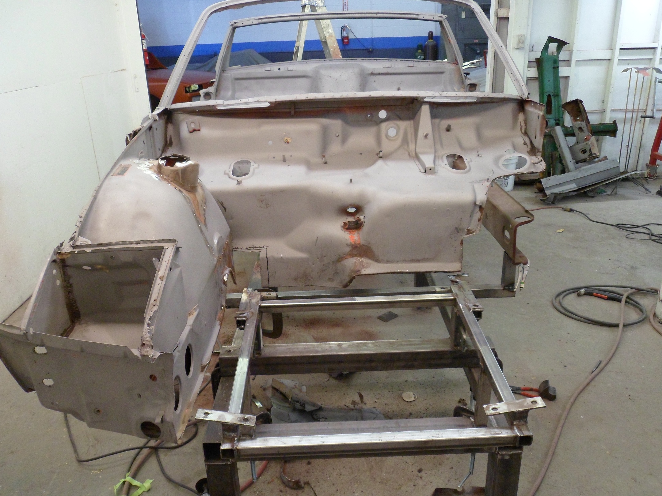 Jim bought another parts car this weekend so we'll get the nose panel and rear tail panel that we needed. It also gives him the early suspention parts and other things that will be used.