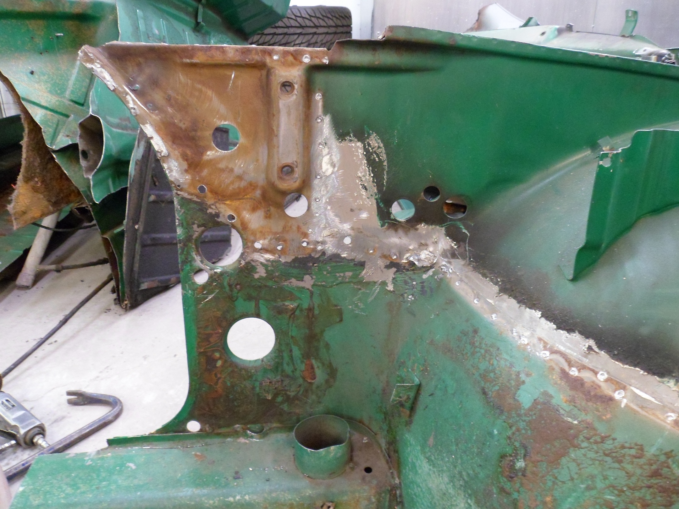 I was at the shop looking it over and Jim and I will be gutting the 70 parts car and breaking out the (IMG:style_emoticons/default/sawzall-smiley.gif) The drivers rear swing arm was replaced with a late arm and the rack had been welded in a few areas from it's crushing so just a few of the things on this parts car going on the -6 |