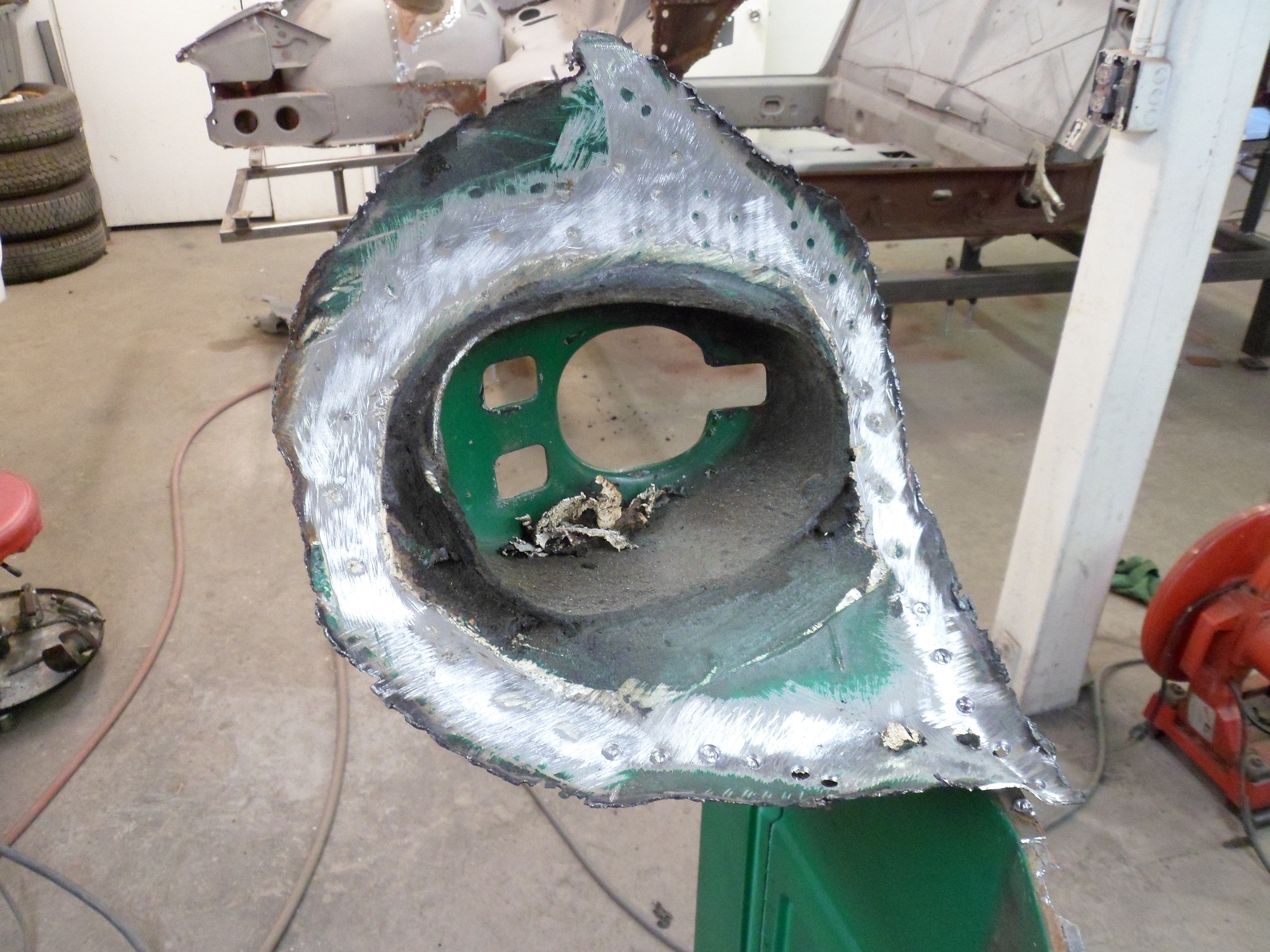 I got the front corner section in place this weekend, looks good, now I will send it out for media blasting.