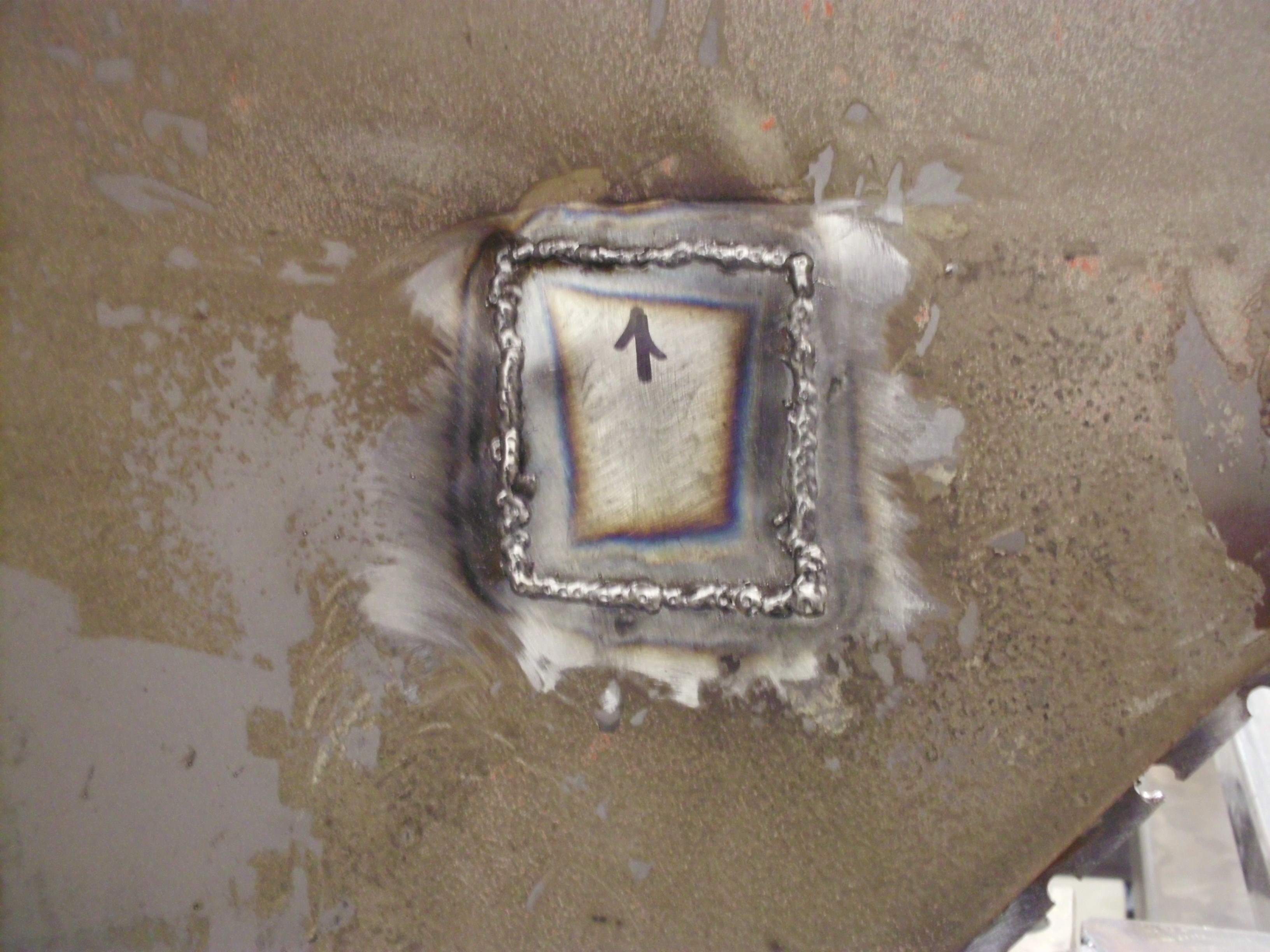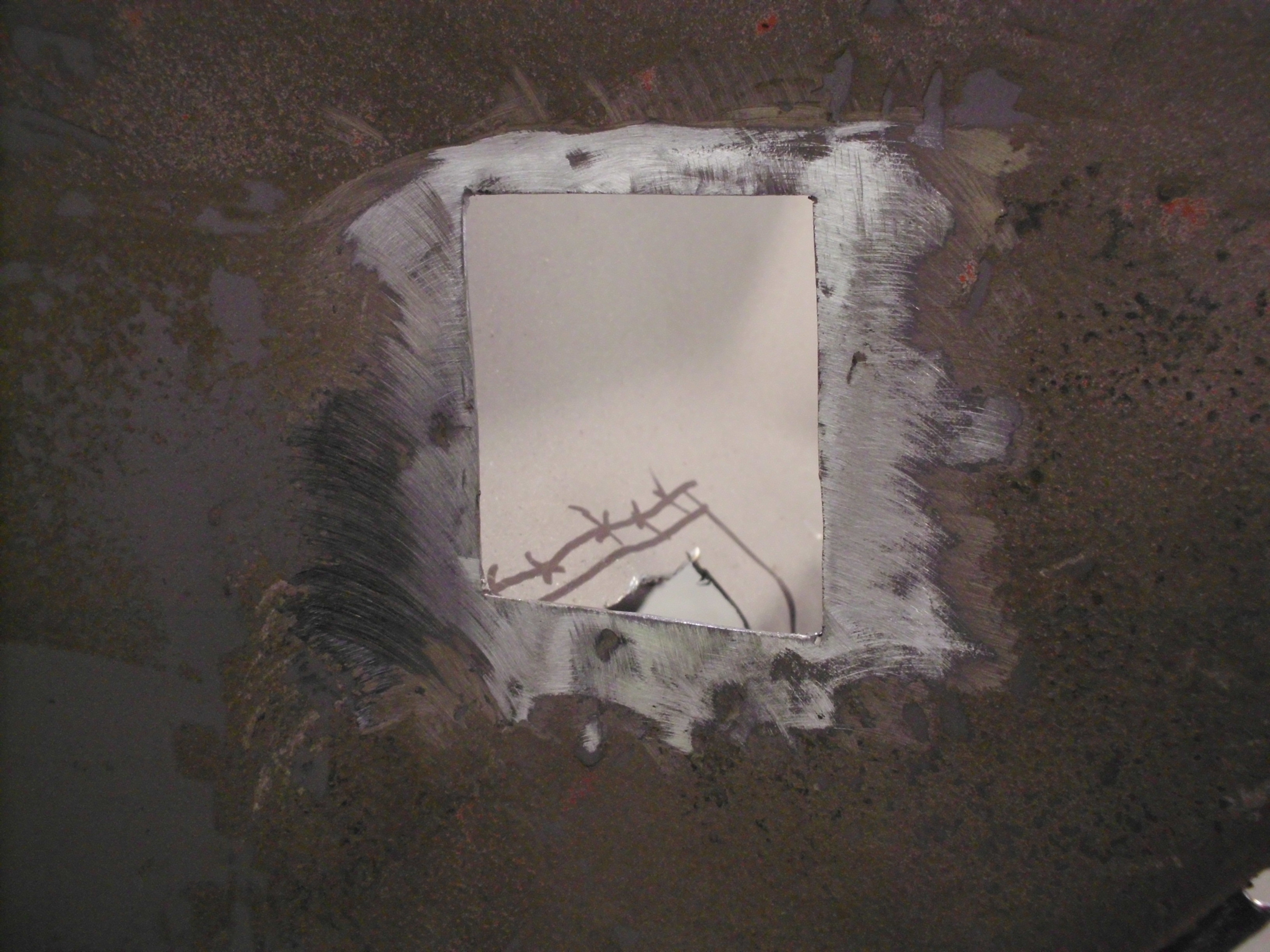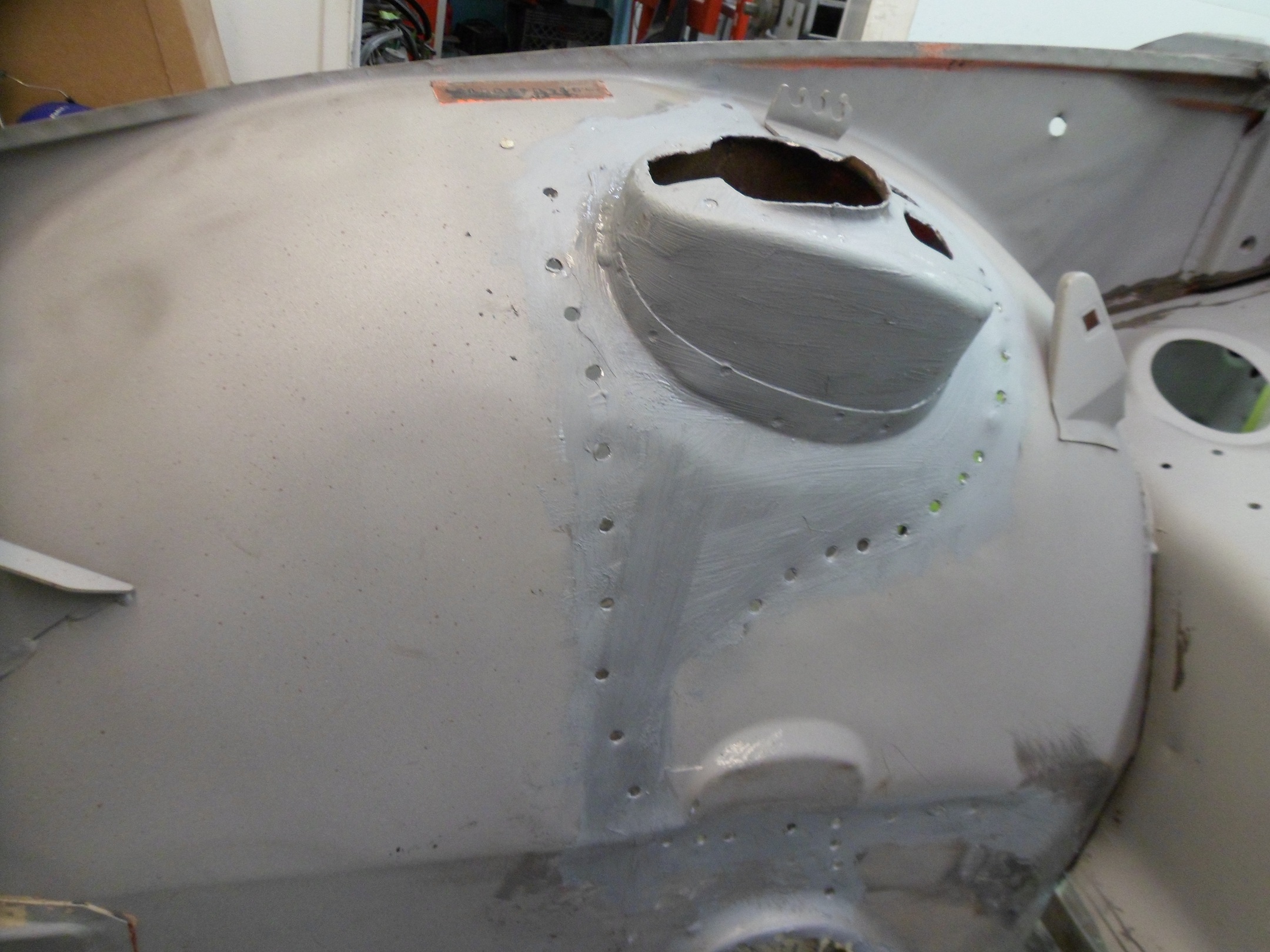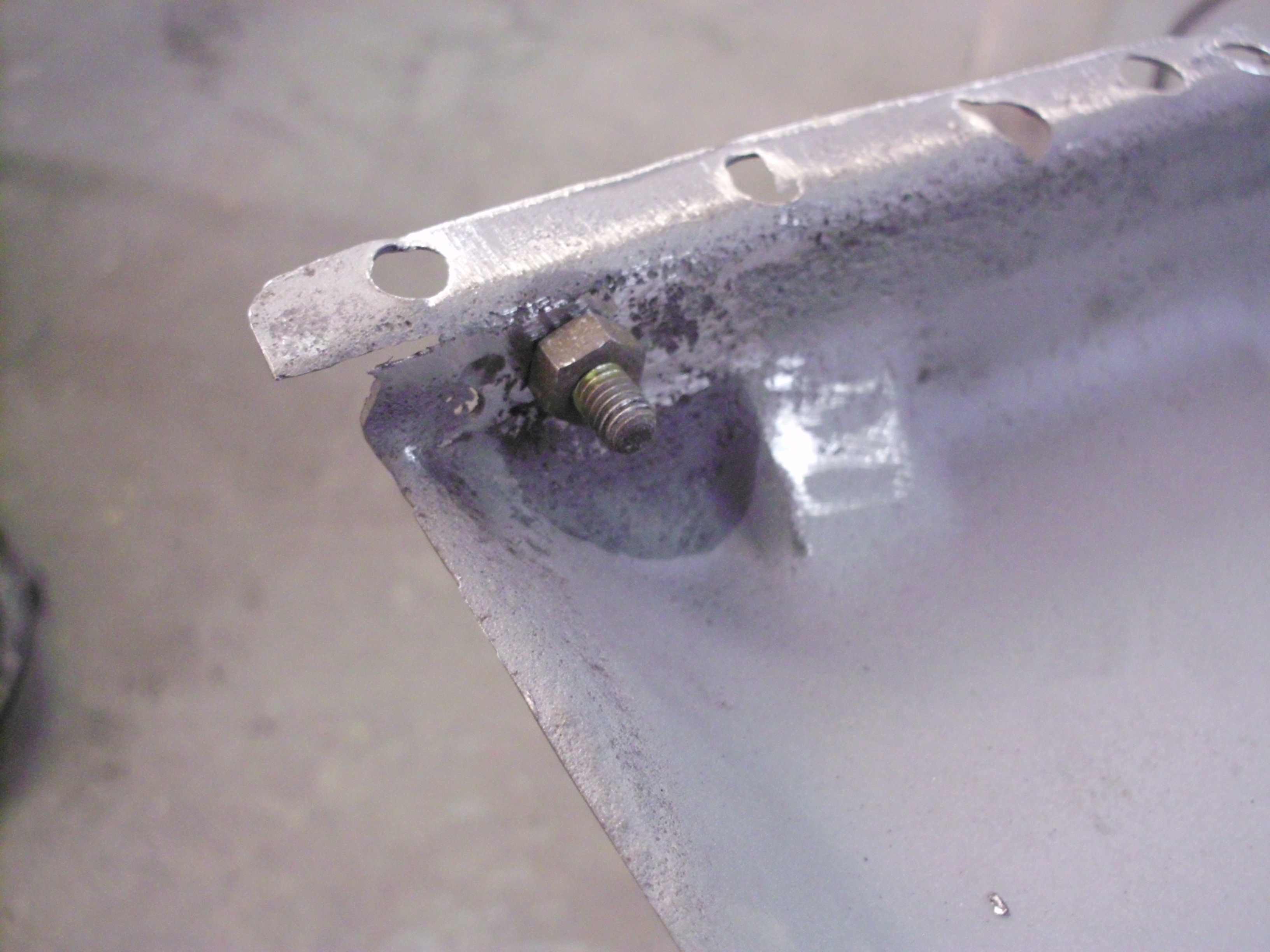 a PO had crudely punched/torn a hole in the inner fender to run lines.