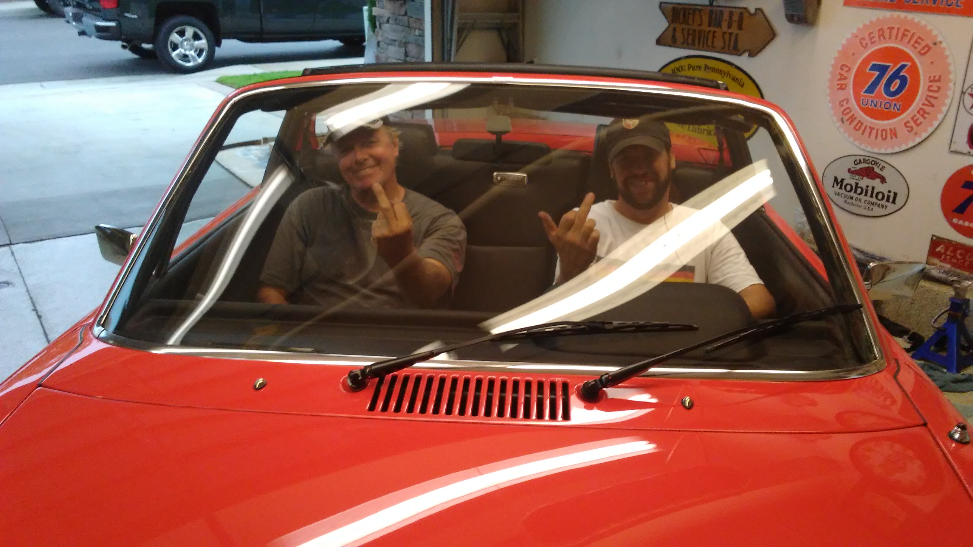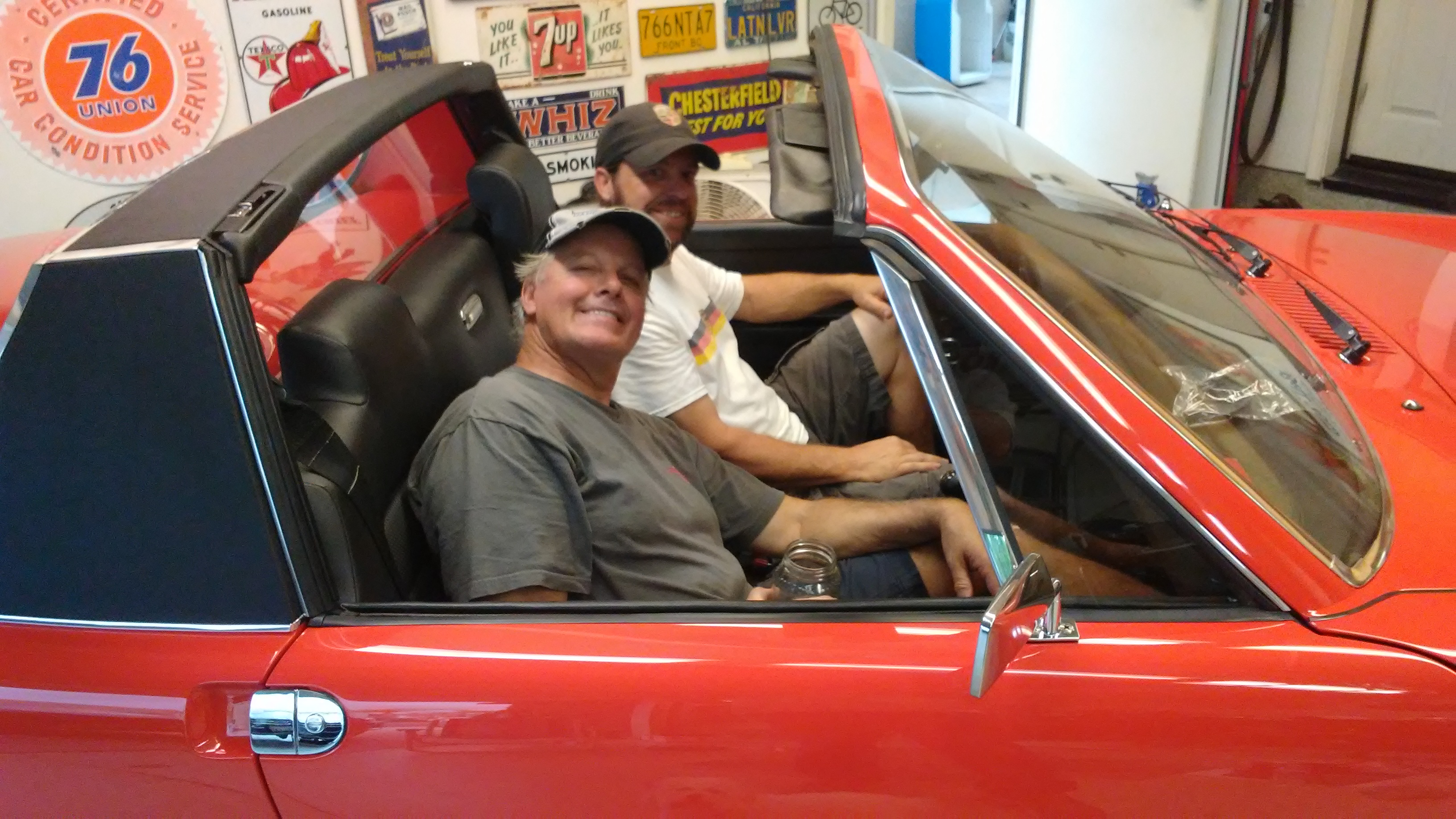 Another day at Jims. We go a lot done. Carpets and seats are in. Andy and Jim relaxing after a long day in the hot garage.