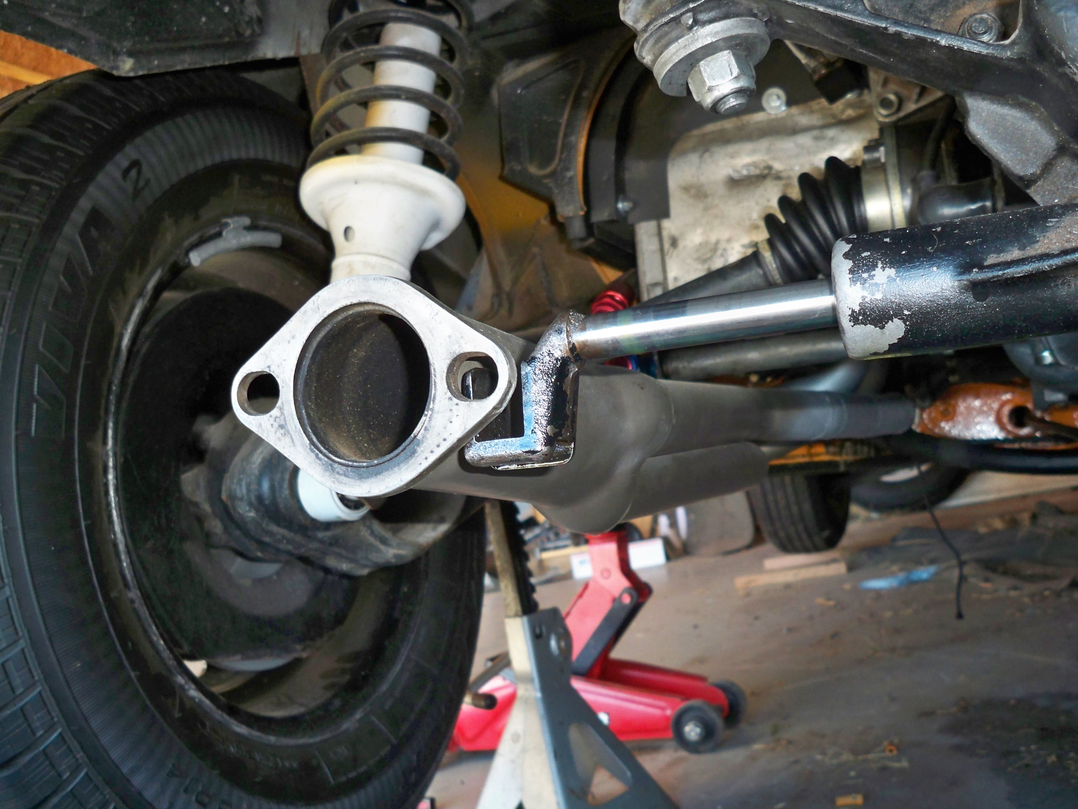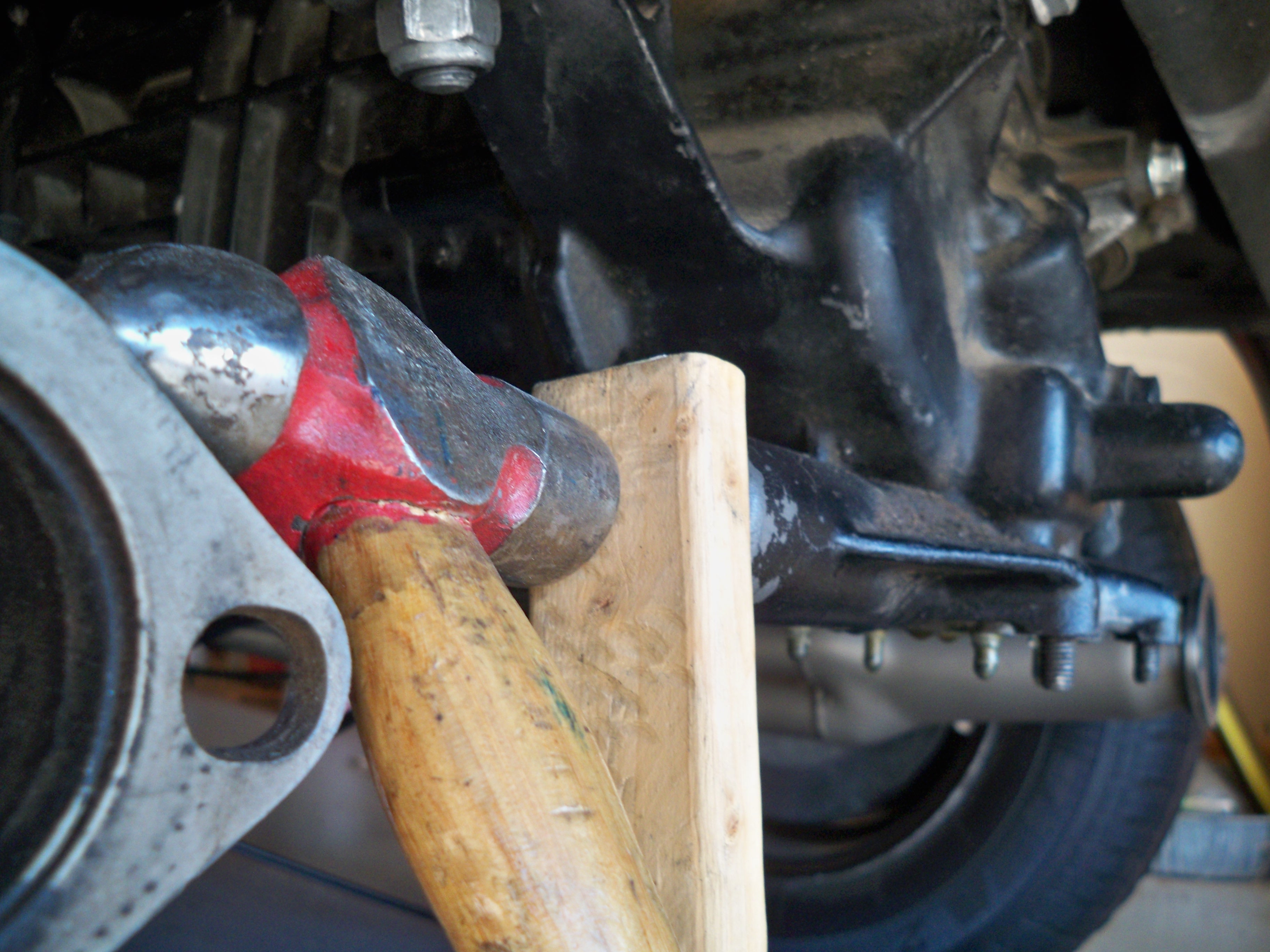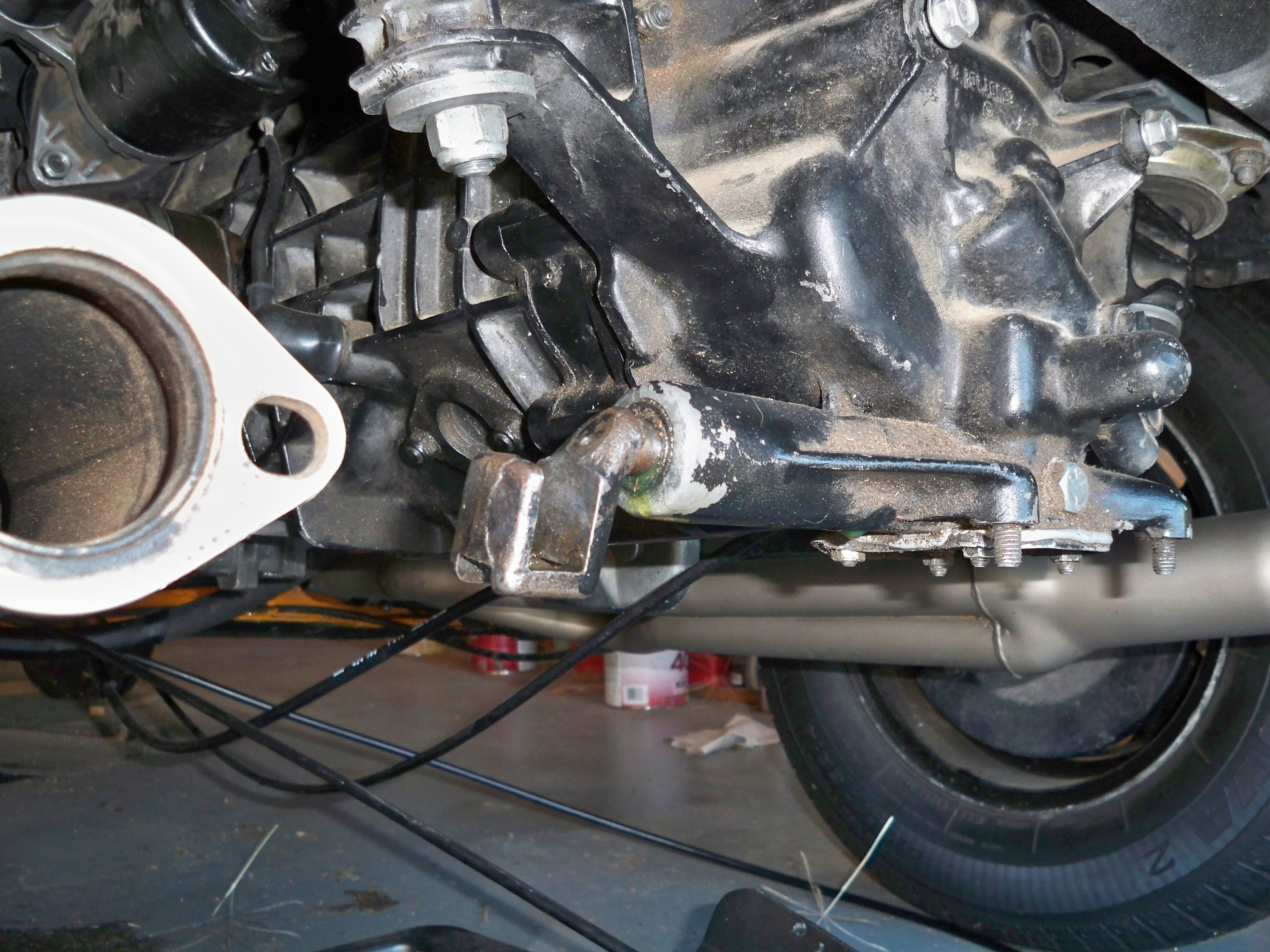 I bought this -6 conversion project on Ebay too many years ago. It finally got off jackstands and I filled the transmission with GL-5. The next morning I found a good sized puddle under the shift rod. It wasn't the first "au krappe" moment for this project.
