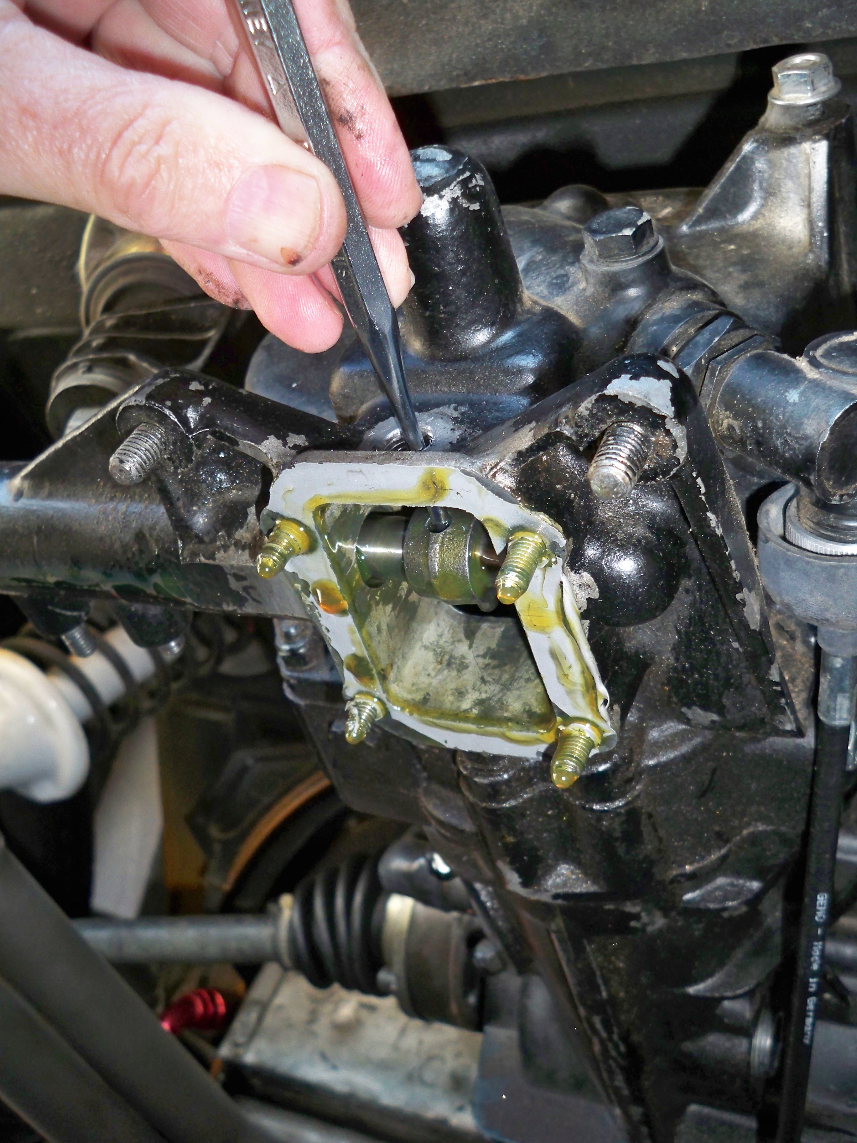 I tightened up the header and added fresh GL-5. Remember this 17mm screw has a pipe thread so don't try to bottom it out. Just get it hand tight, its not going anywhere.