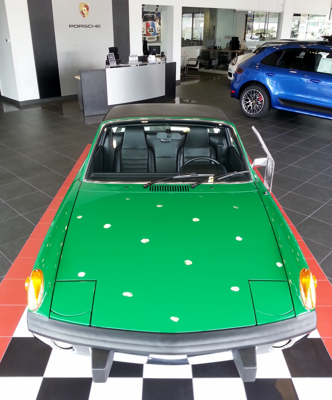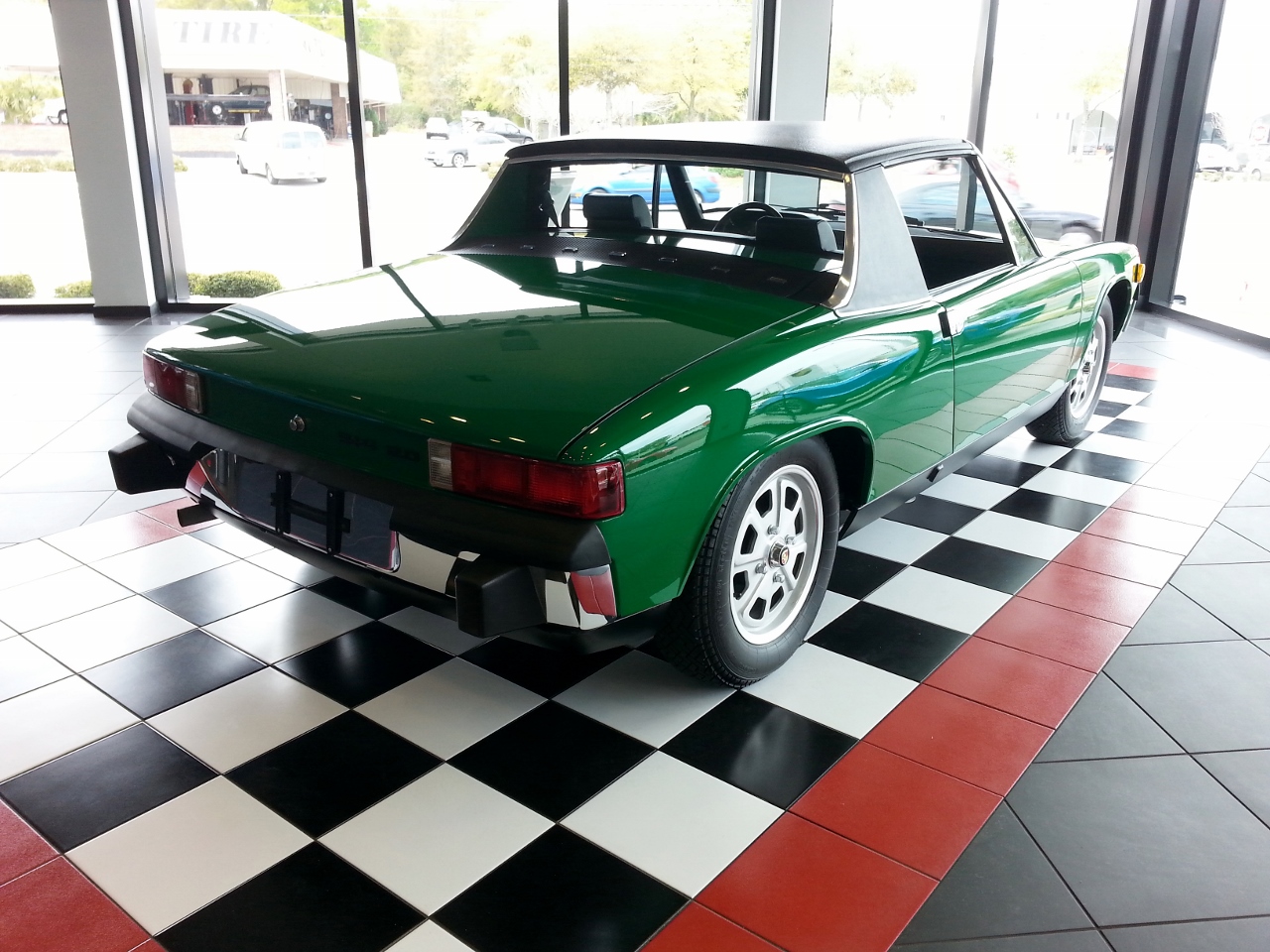 So if you've ever wondered what a brand new 914 looked like (and I don't mean restored new, but showroom new), here you go. A bit over 4,000 original miles from driving it back and forth from the museum, this fully loaded (except read defrost window and passenger side mirror) 1974 Irish Green 2.0 is - literally - showroom new.