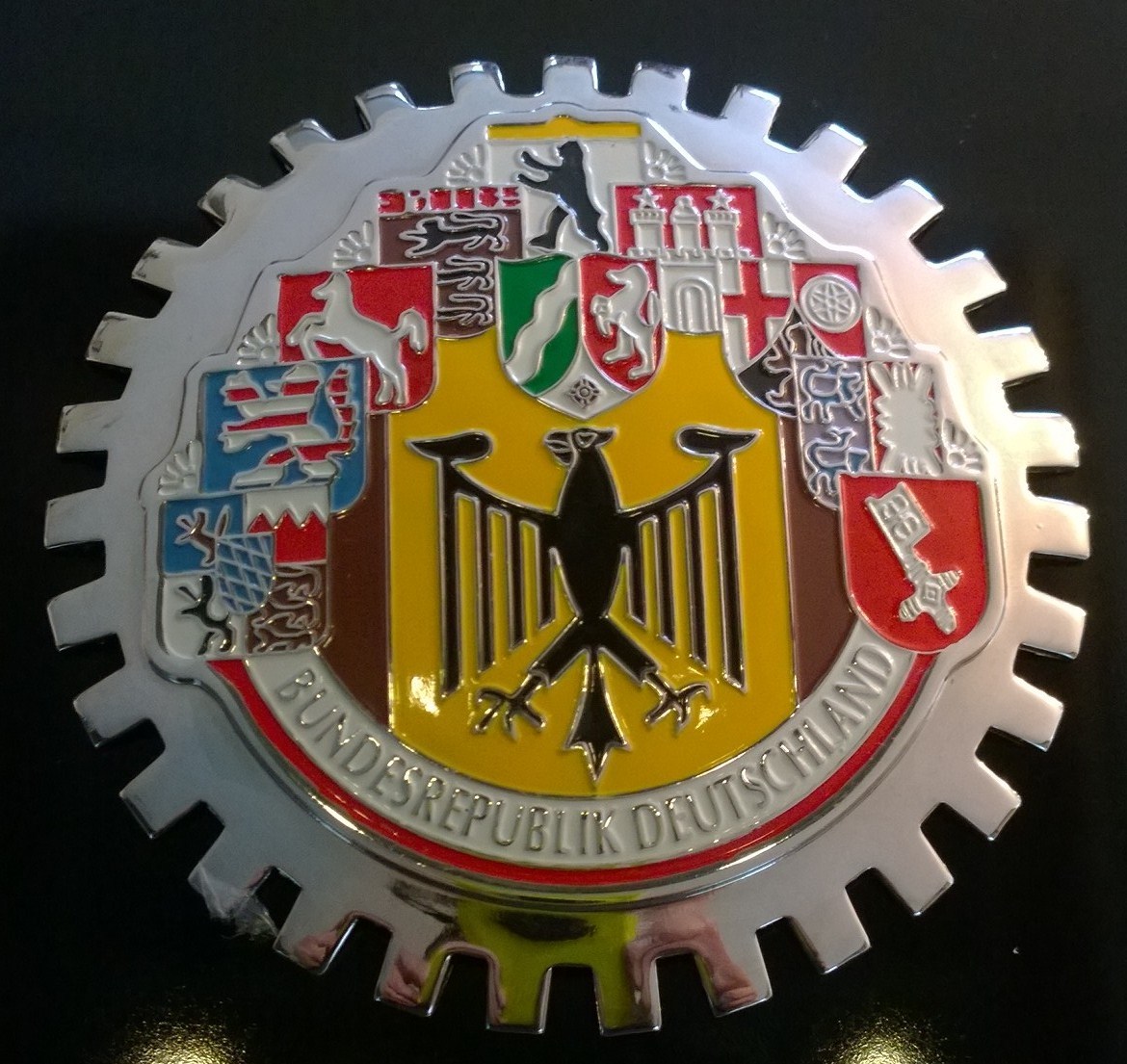 Black on silver, very nice badge...
