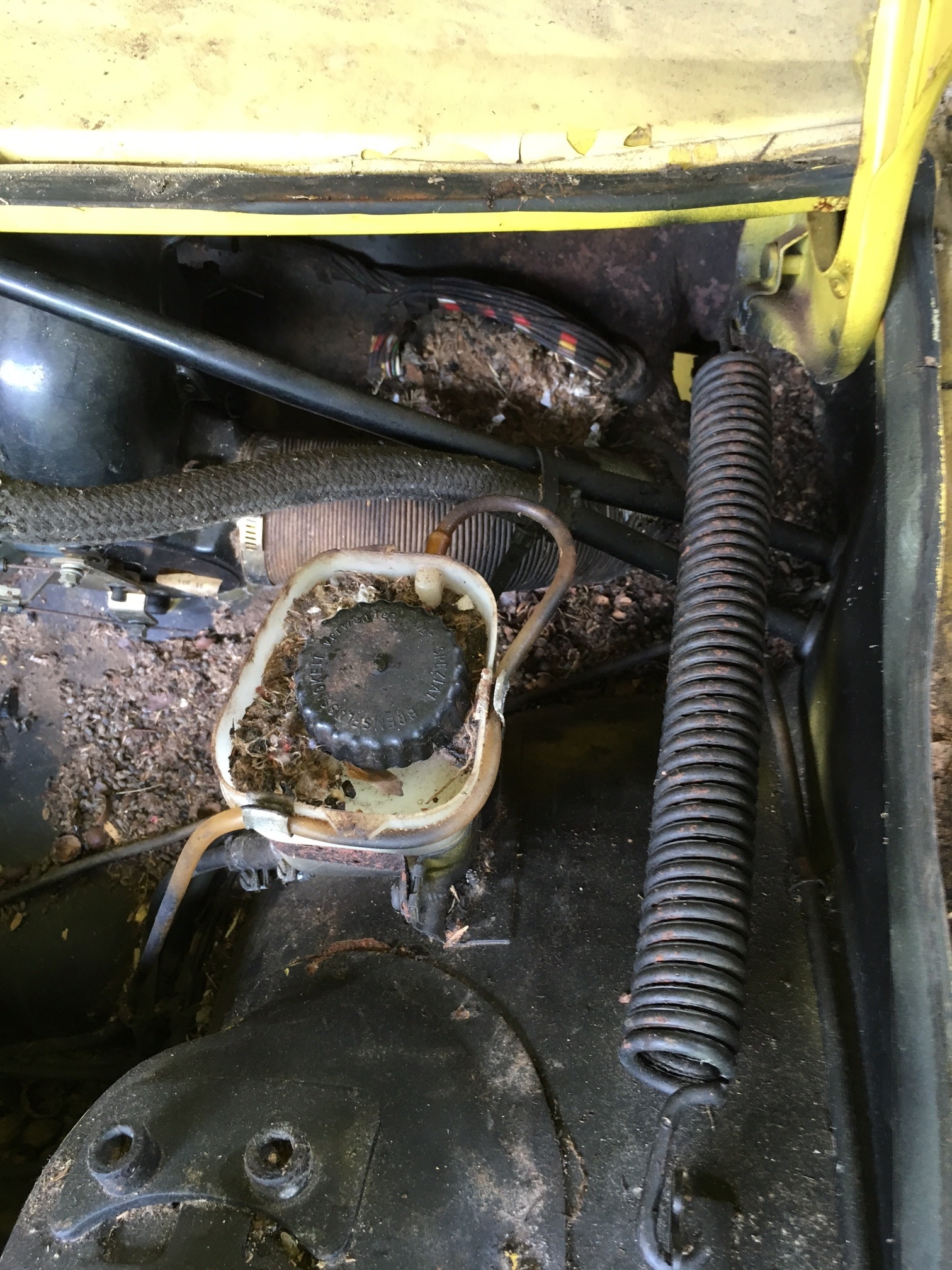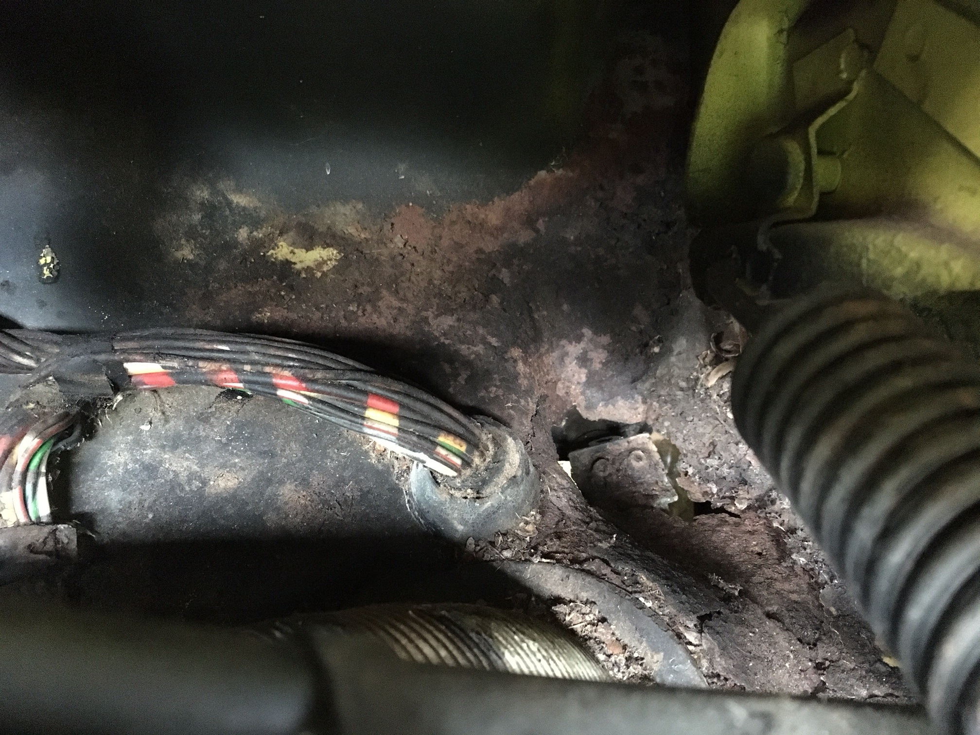 Also for about the first time since I bought the car, I opened the front trunk to start cleaning it out. TONS of rat crap everywhere that I had to vacuum out. (IMG:style_emoticons/default/icon8.gif) Luckily wiring harness seems undamaged. There is one area of rust where the front trunk handle pull is located. This will have to be replaced at some point.