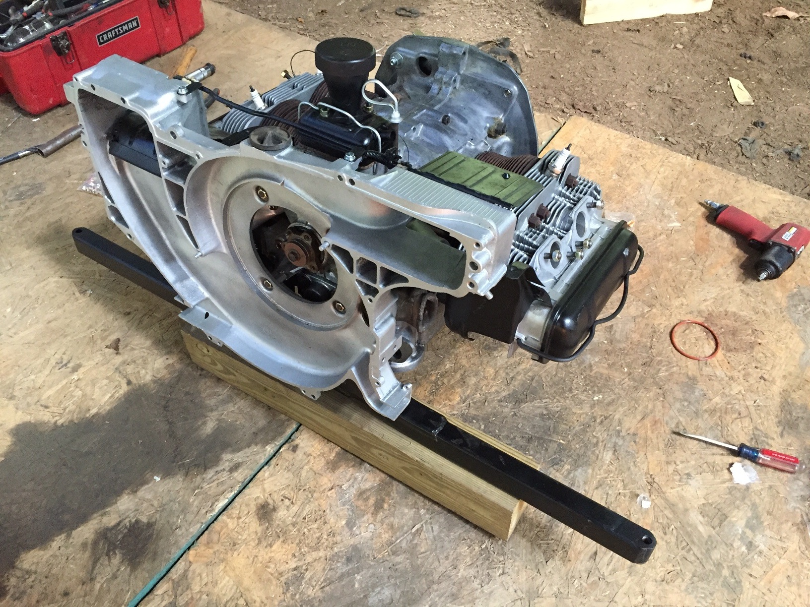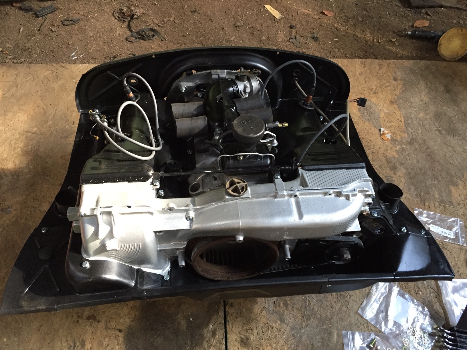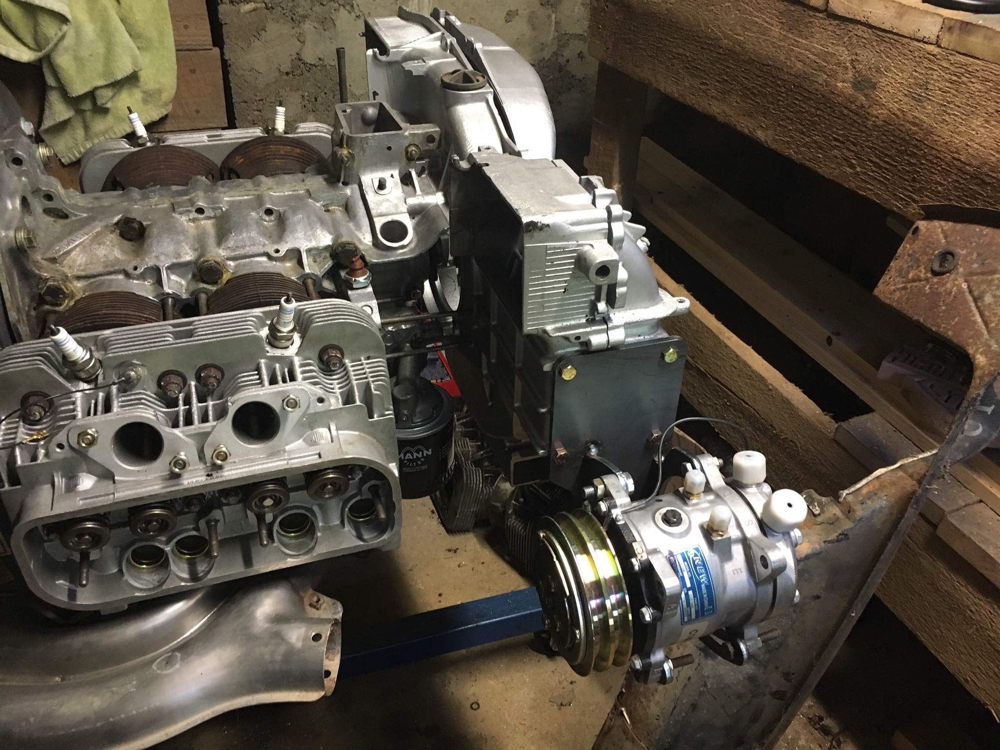Been working on a little side project for this car. I plan to really drive this car so I will eventually add A/C to it. I have been working on a way to mount the compressor without modifying the tin and while maintaining the stock" appearance from the top. I still have some mockup to do... install oil cooler, straighten the tin, engine mount bar,etc. but so far everything is looking good. Compressor will be rotated 90* from what the picture shows. I will loose heat on the passenger side but that's not the end of the world. I might still be able to duct the heater fan in the engine bay so I at least have defrost on that side. Stayed tuned... hoping it works.
