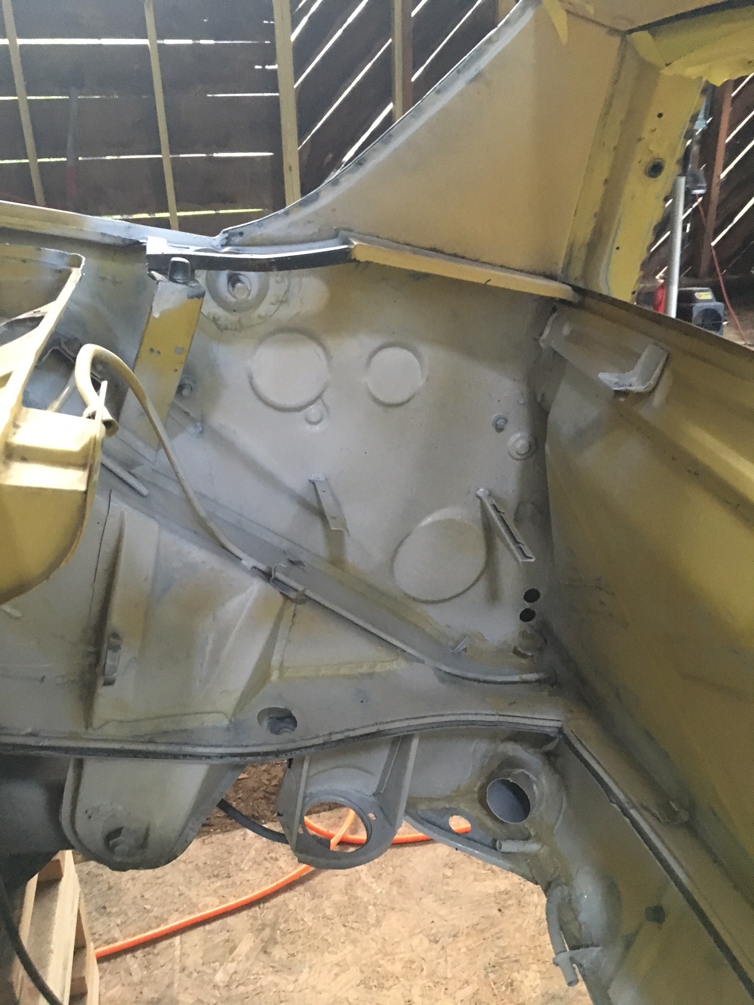 The rest of the front trunk was in very good shape. The bottom pan was perfect. Weatherstrip channel has some rust but thats to be expected and its an easy fix. |