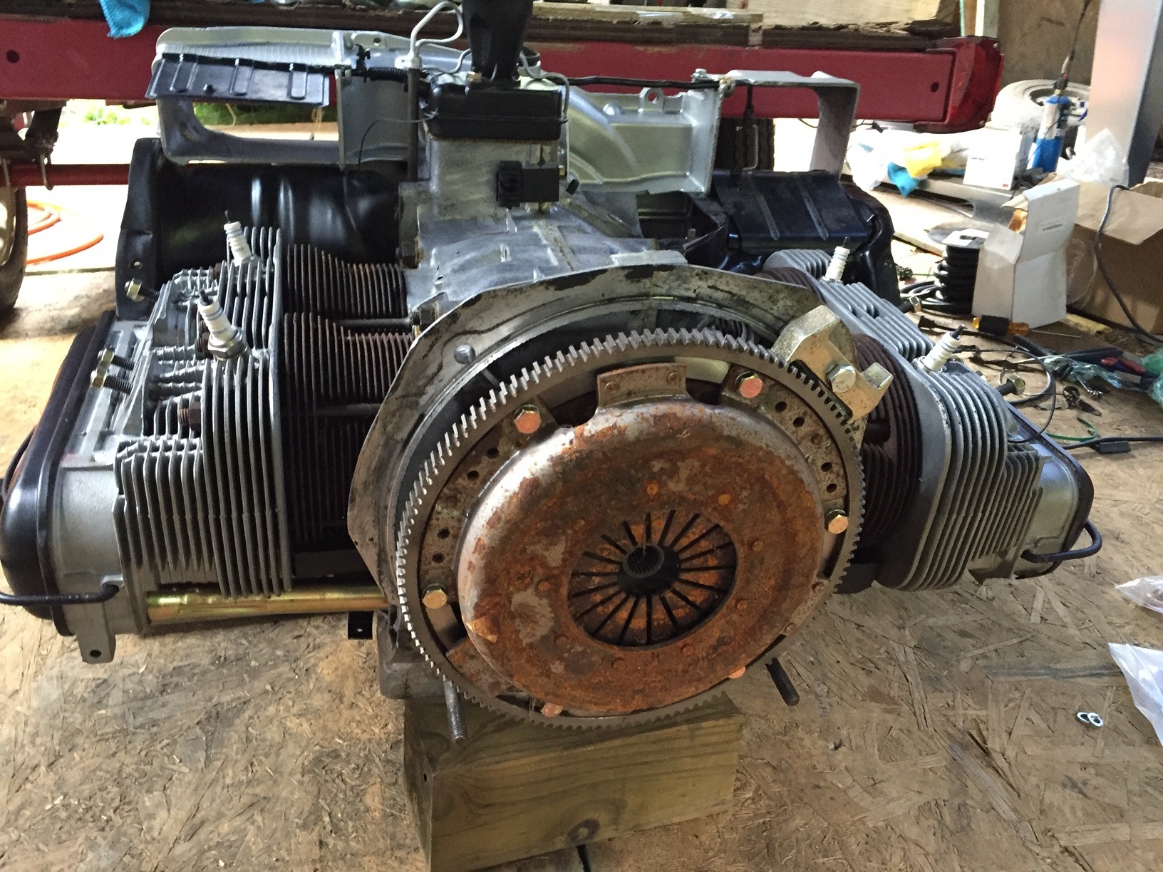 Today I spent the day working on the transmission. I first had to do a very deep cleaning because the thing was covered. I then replaced the main input seal, output seal, Speedo drive seals, shift rod seal and cover plate. Also installed new mounts and cleaned the ground strap. I've never tested the tranny but I at least know it won't leak! I finished the day by realizing I do not have a new ball cup bushing for the clutch fork. A single $2 part is holding up progress. Unfortunately I will have to wait a few days for that to arrive before I can mate the engine and tranny together and install in the car. Valves done. I installed a new lightened 12lb flywheel. Also a new pressure plate and clutch disk. Although it doesn't look new, it is. |
