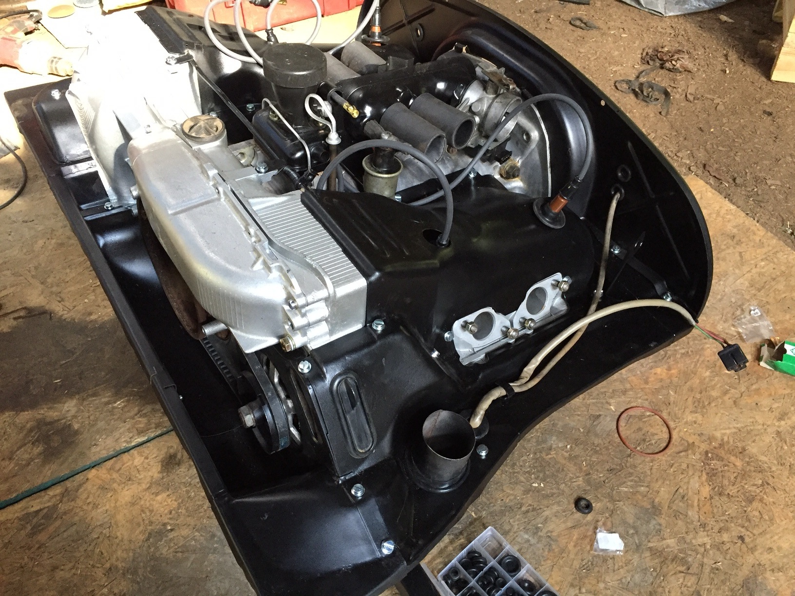 Well I spent the day on Sunday getting the motor ready. I started by installing the valve train and doing a valve adjustment. I installed the thermostat, oil cooler and some other small tasks. I then had to move the motor from my basement to the shop where I could finish assembling the rest. Installed all the engine tin, shroud, and alternator. I also prepped some other items like the intake plenum with throttle body, sensors, etc.