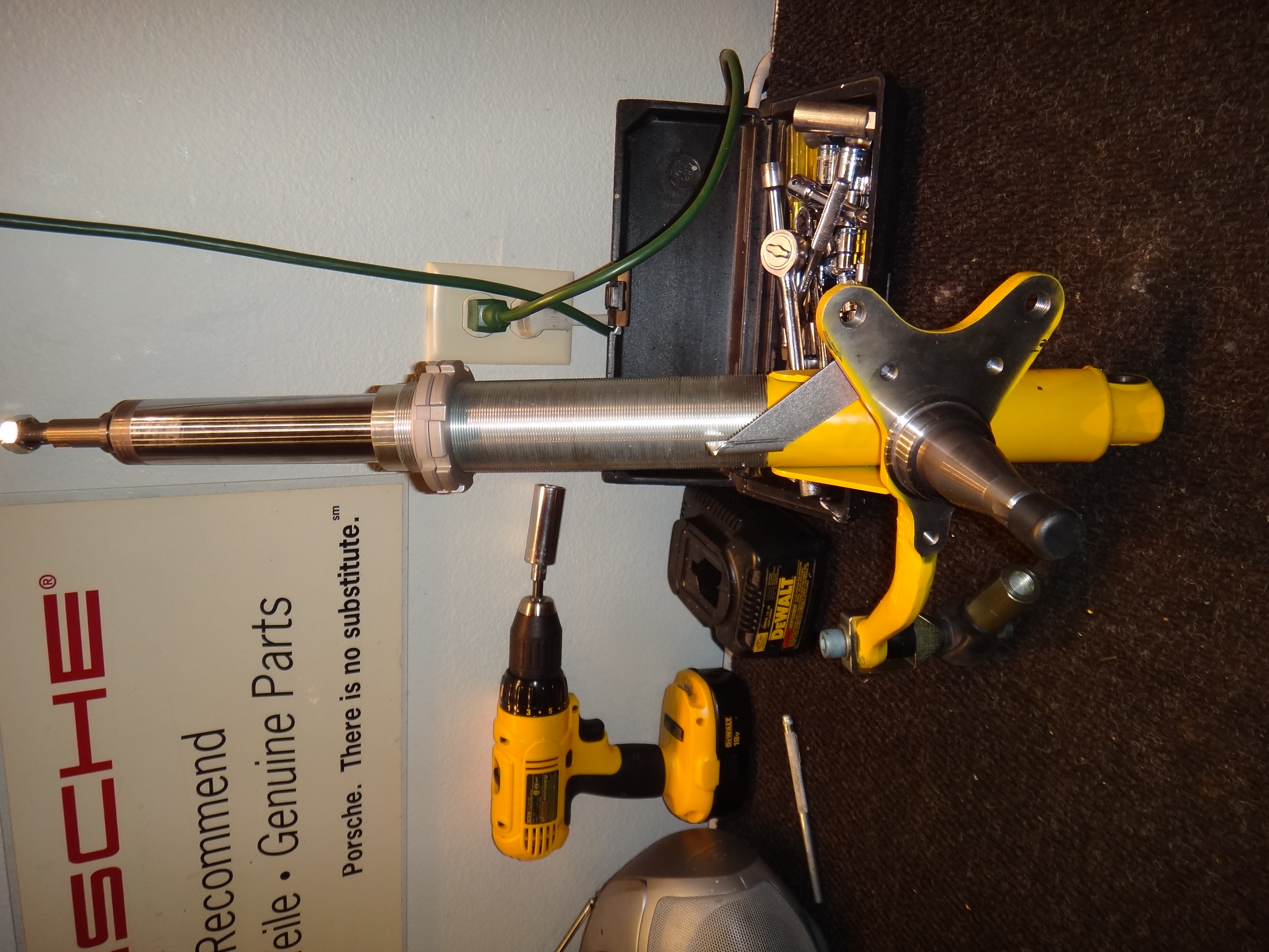 On to to cutting the holes for the oil tank in the left fender/engine compartment. Here's a little write up from Wayne at Pelican. The installation of the oil tank requires you to drill seven holes in the side of your engine compartment. Fortunately, all 914s have indentations in their sheet metal where the holes are to be drilled. If you look on the side of the wall inside your 914, they are located just above and below your relay box. You probably never noticed them before - I know I never did. The holes that must be drilled require a set of hole saws: 4" to 4.5" for the oil filter 2" for the breather hoses 2.5" for the filler neck 1.5" for the 2 hole return line holes. A shot from the 914 PET. ![]() I already had the hole template that Doug had drawn up in my possession. Then Doug brought out the oil tank itself. So I was ready for battle. ![]() But we didn't have any hole saws that large. So off to ACE I went. The problem is, I bought the first couple hole saws too small. I should have pulled the Pelican info up onto the 55" computer monitor. (IMG:style_emoticons/default/sad.gif) So I might need to do some artwork with the carbide burr cutter. But I'm hoping if one uses a very soft and slow touch I should be able to enlarge the holes with the correct hole saw. I just returned from Lowes with the correct ones. ![]() |