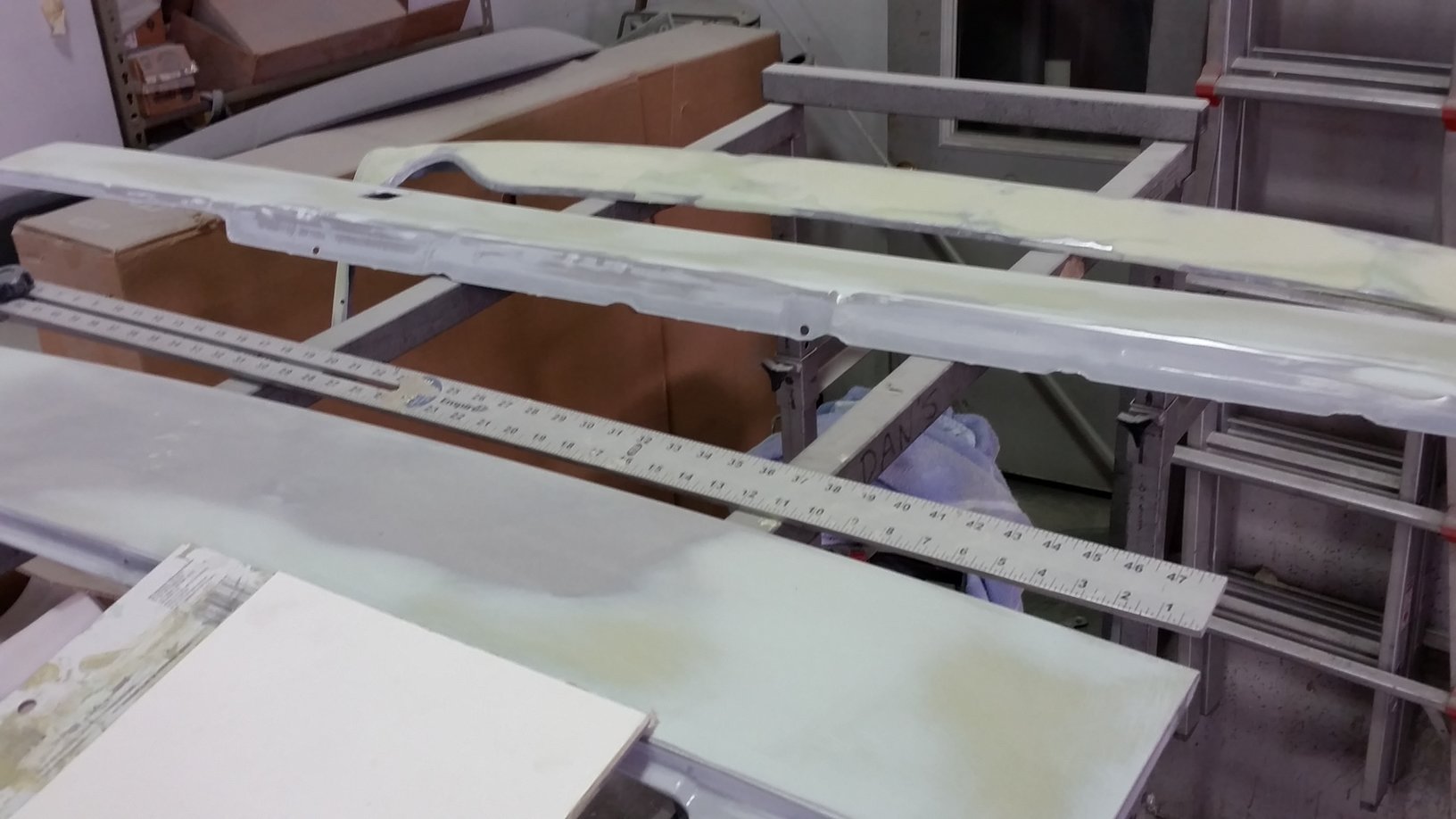 Many hours went into filling and sanding, plus some heat to get the fiberglass to lay correctly. The undersides will still be raw fiberglass with only the tops and edges painted body color. |