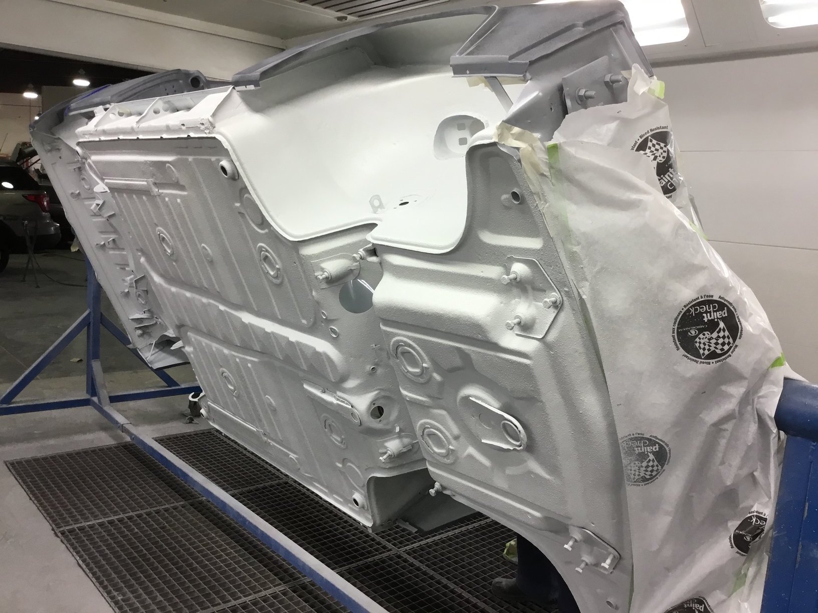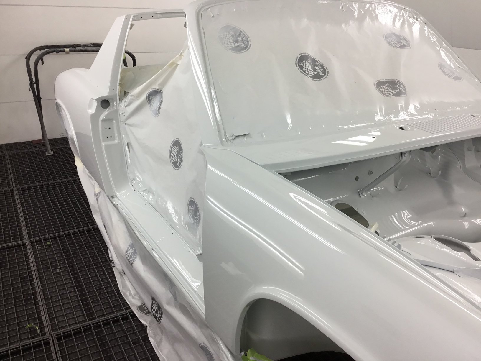 Doors are painted now. Today the main chassis is in the paint booth for 4 coats of Carrara Weisse followed by clear. Should have some pics tomorrow. Didn't think this car would ever get to this stage. It's been nearly 3 years since I picked up this POS example. Thanks to Cary, Superior Auto Body and many others this car will be transformed into something special in the end. Stay tuned.
