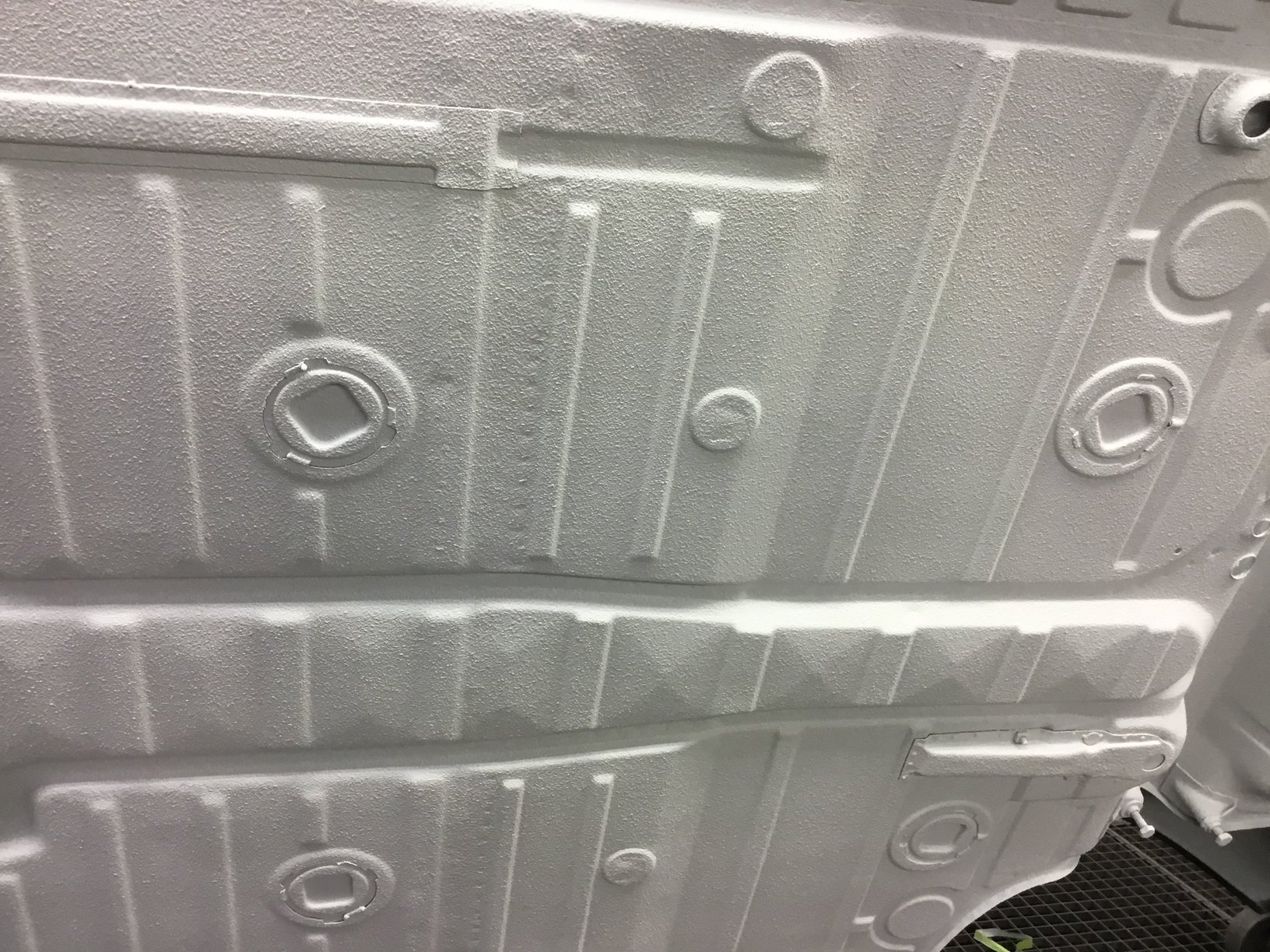 Sorry the pics are few and far in between....and low quality. The shop used a catalized 2 part SEM seam sealer. Dried very hard so should be tough as nails hopefully. Will be getting the Raptor undercoating shot on next this week. Then comes the color. So we're finally getting somewhere.... |