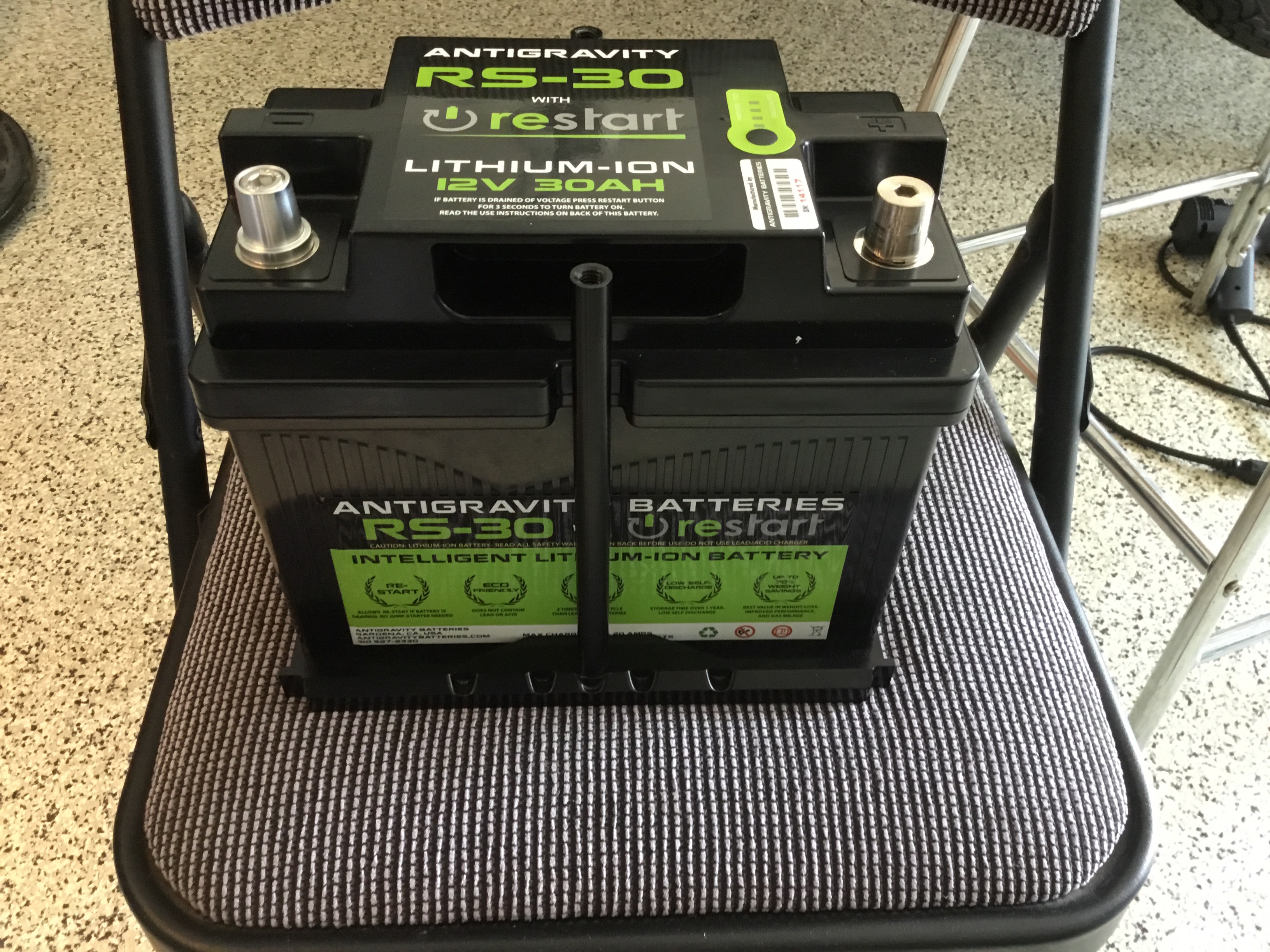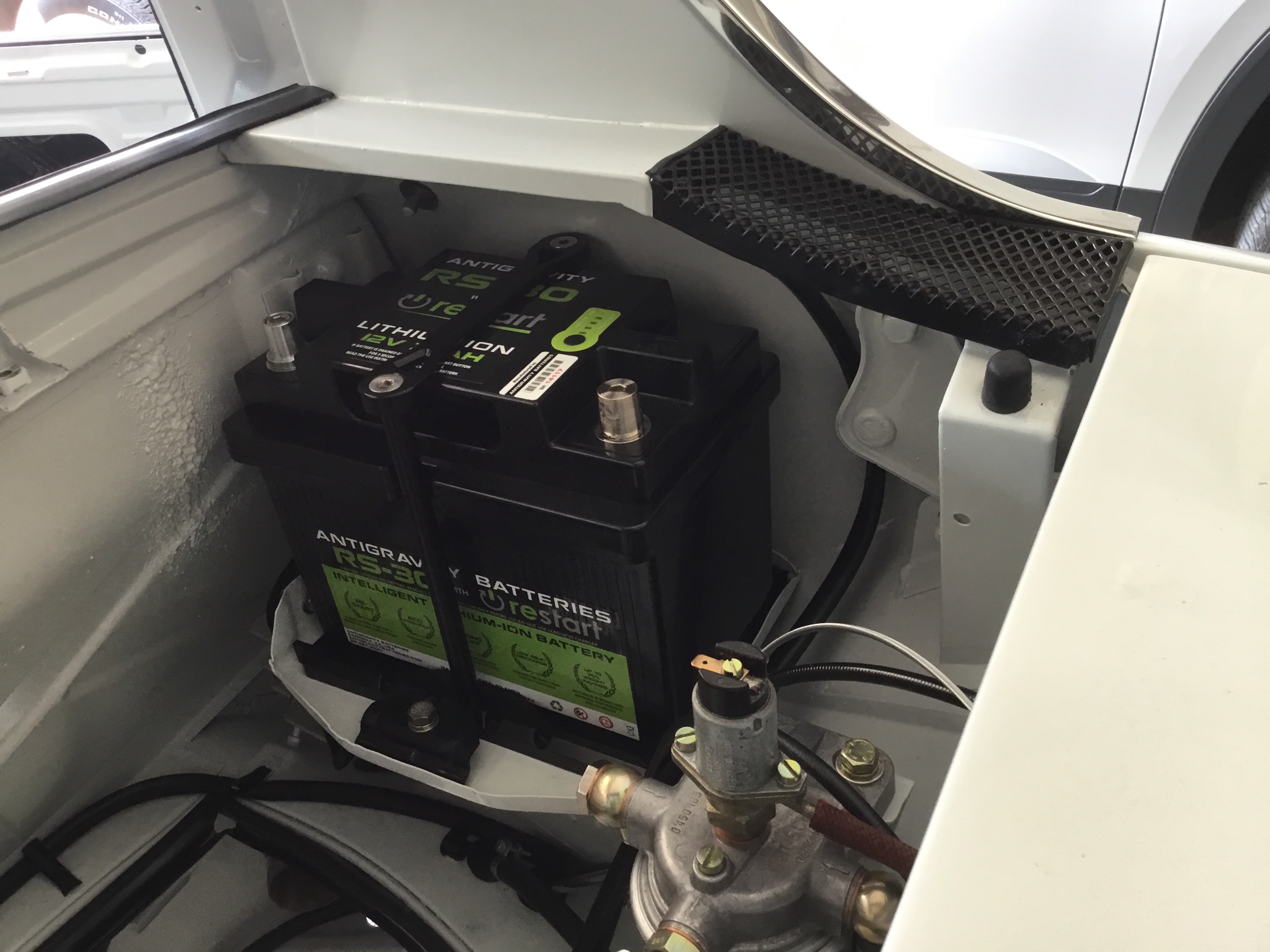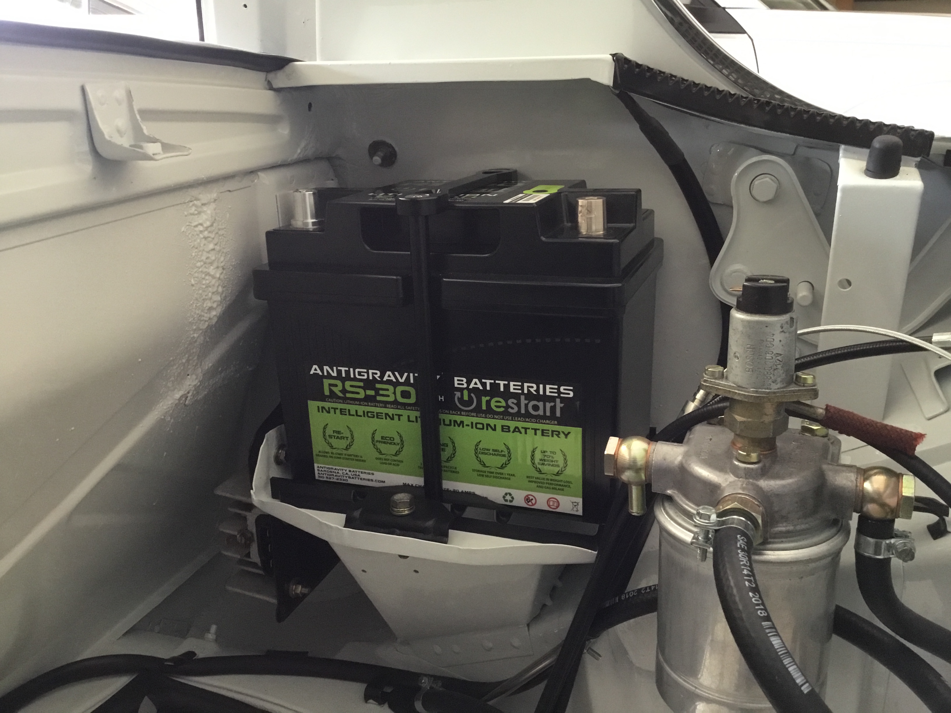 Antigravity Batteries' lithium ion example. 1200 cranking amps weighs 11.5 lbs. This is what they call a "starter" battery meaning it can't handle a car that has a massive stereo system pulling all kinds of amps. But it is perfect for an early Porsche that has minimal electrical draw....like mine. |