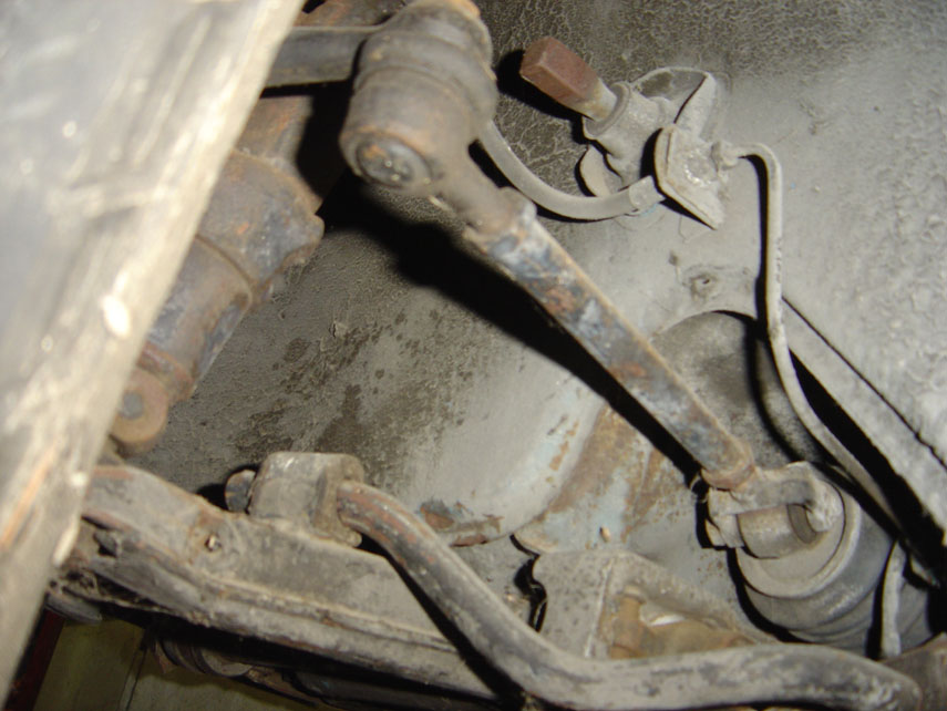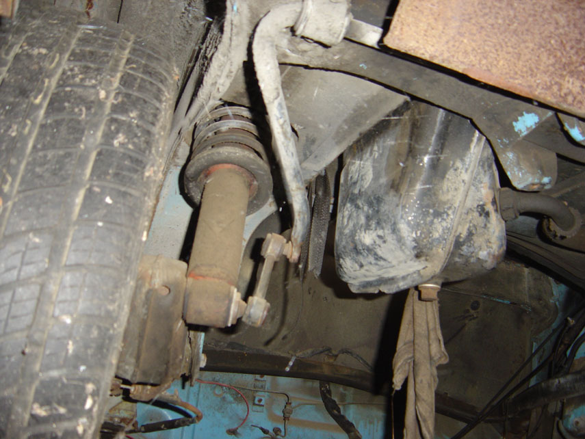The front, Through the spiderwebs you can see a 911 underbody sway bar. I also noticed a factory front sway bar with no drop links.