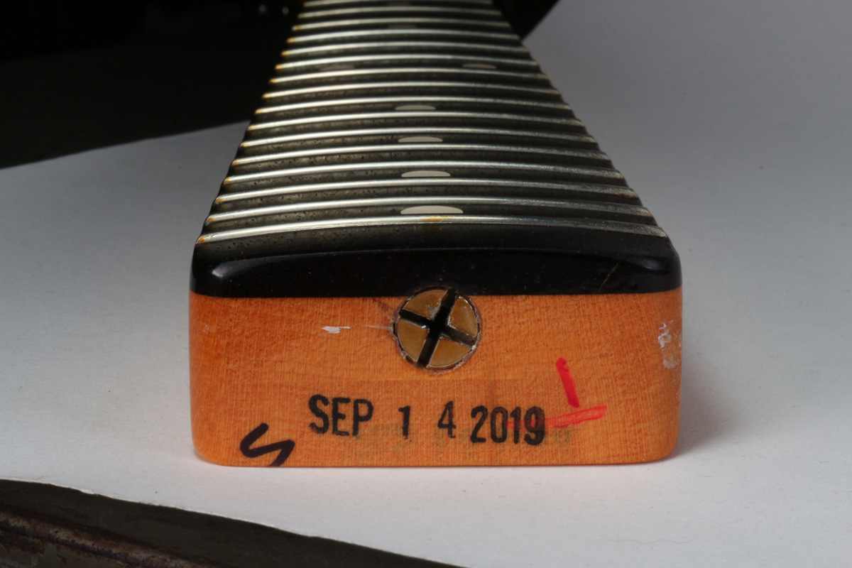 I was setting up the truss rod on a new guitar I got, a Jimmy Page Mirror Telecaster. As it's a '59 reissue, you have to take the neck off to get to the adjustment. Look what I found (IMG:style_emoticons/default/biggrin.gif)