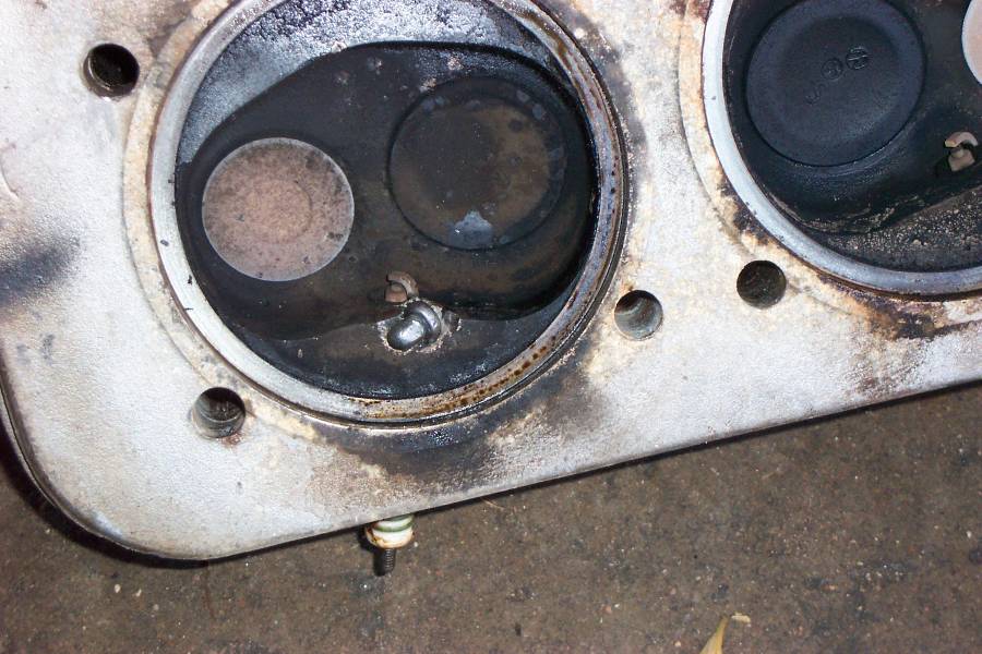 Quick somebody call Robert Stack ! (IMG:http://www.914world.com/bbs2/html/emoticons/laugh.gif) I would guess that the head actually deteriorated at the exact spot that the screw was in and over time fell through the head and into the combustion chamber. (IMG:http://www.914world.com/bbs2/html/emoticons/screwy.gif) After all it is a 914!