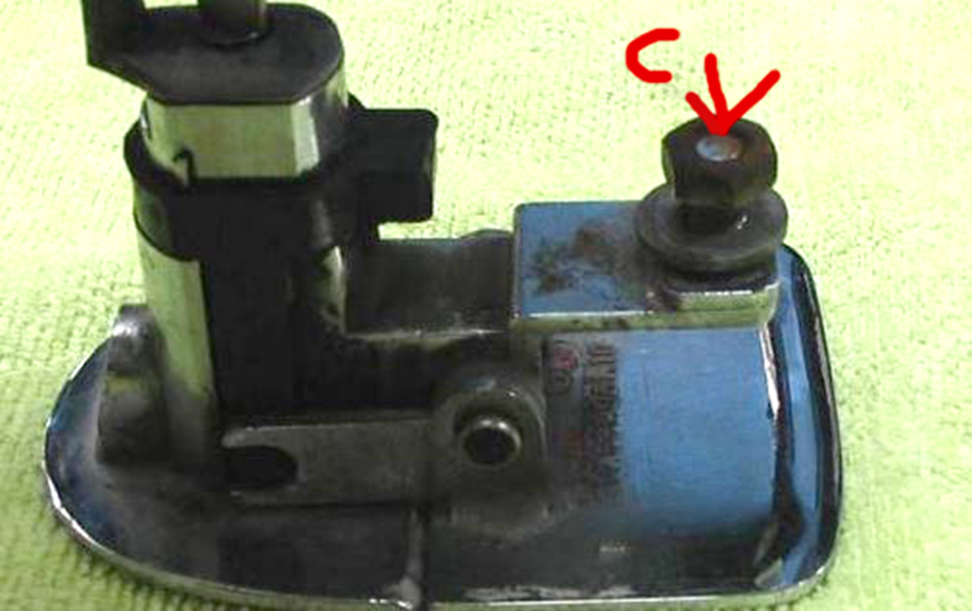 trying to remove the door handles and the nut just spins.. so does the threaded stud.. A is where I scrapped away some of the rubber seal and the threaded stud is visable and it turns when the nut is wrenched. B is the nut that is scarred from the vise grips... wrench would just turn the nut and the threaded stud C is the nut and stud in question.... a snip from an image of some one else's. the car was painted with the handles on by some one previously. I would think that the threaded stud would just come out when wrenching the nut?? any ideas??? please... thanks randal |