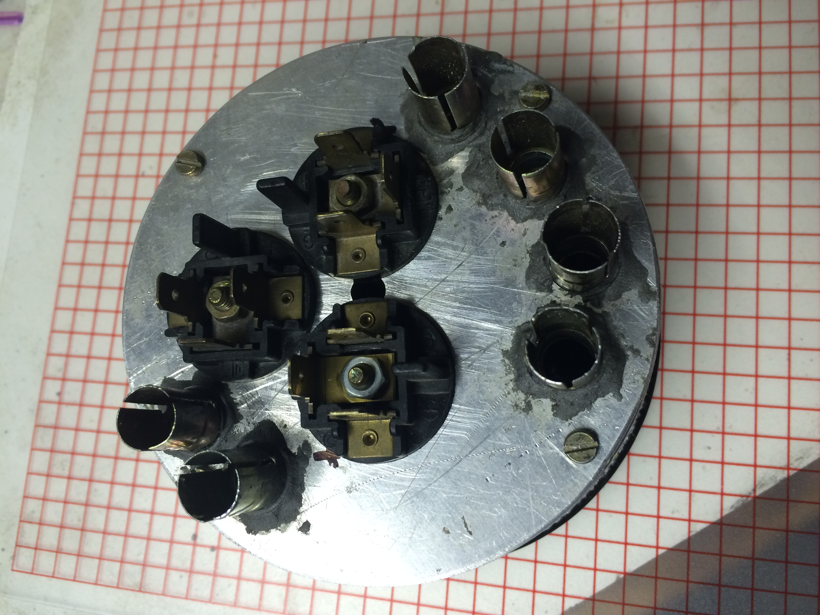 Thanks to Steve Snyder for sending the center button to finish it off. Used an 84 911 combo to get the temp and press modules and a later 914 fuel for the module and face plate. All off ebay for about $150.00. Used condensed gothic dry transfer lettering...fairly close match to the original size and font. A real PITA to put on. Not perfect but looks fine from 2 feet. Made a new back plate per the instructions in various threads on the site. Lots of little dremel cutting (IMG:style_emoticons/default/sawzall-smiley.gif) The generosity and help from the World is really great!! Going out to install. Hope it all works Attached thumbnail(s) |