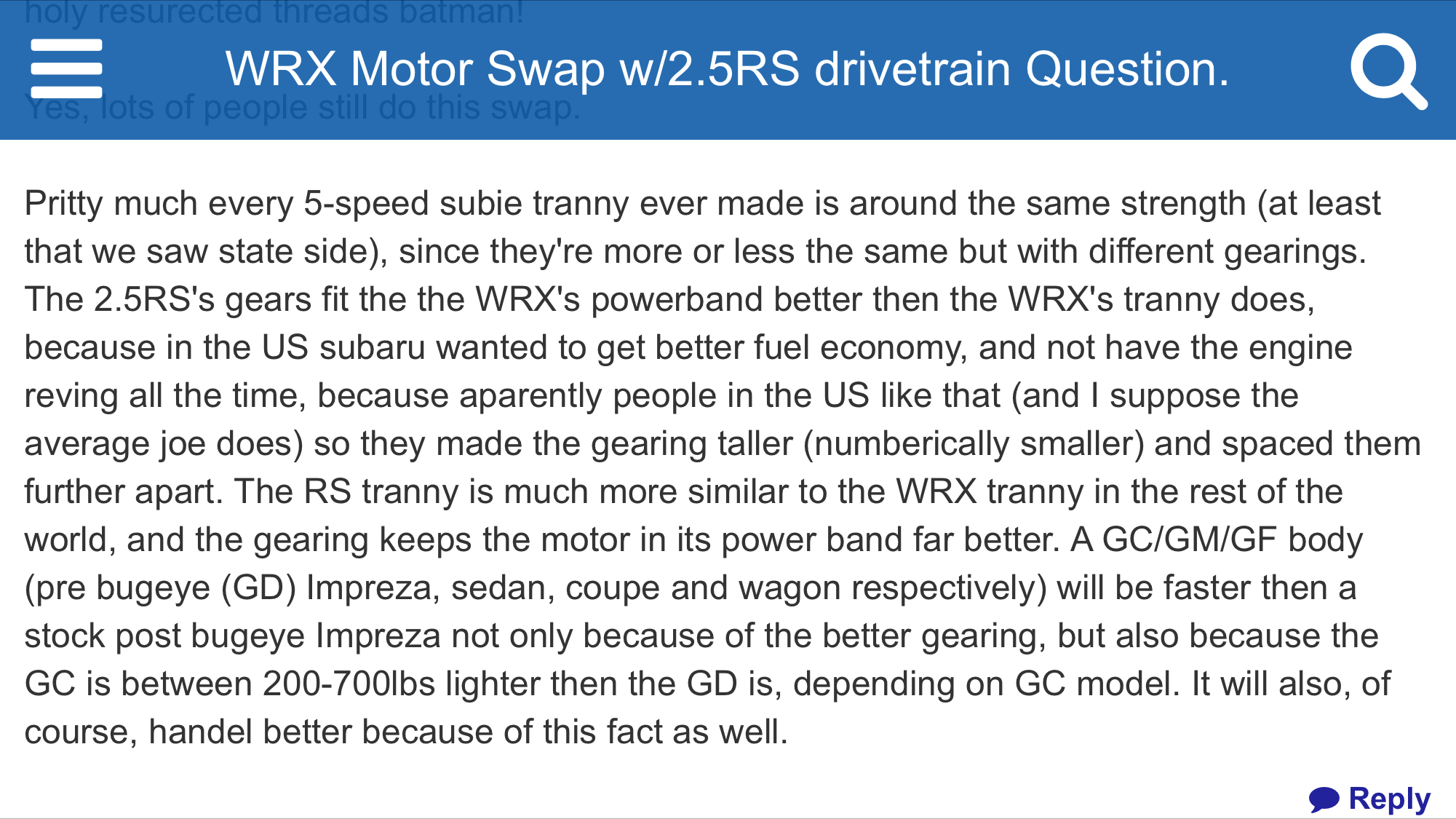 I'm using the transaxle out of a U.S. 1998 Forester into which I've fitted an OBX helical gear limited slip differential. Haven't had it up to highway speeds, so I can't provide opinions. In fact, I haven't yet had it past second gear...