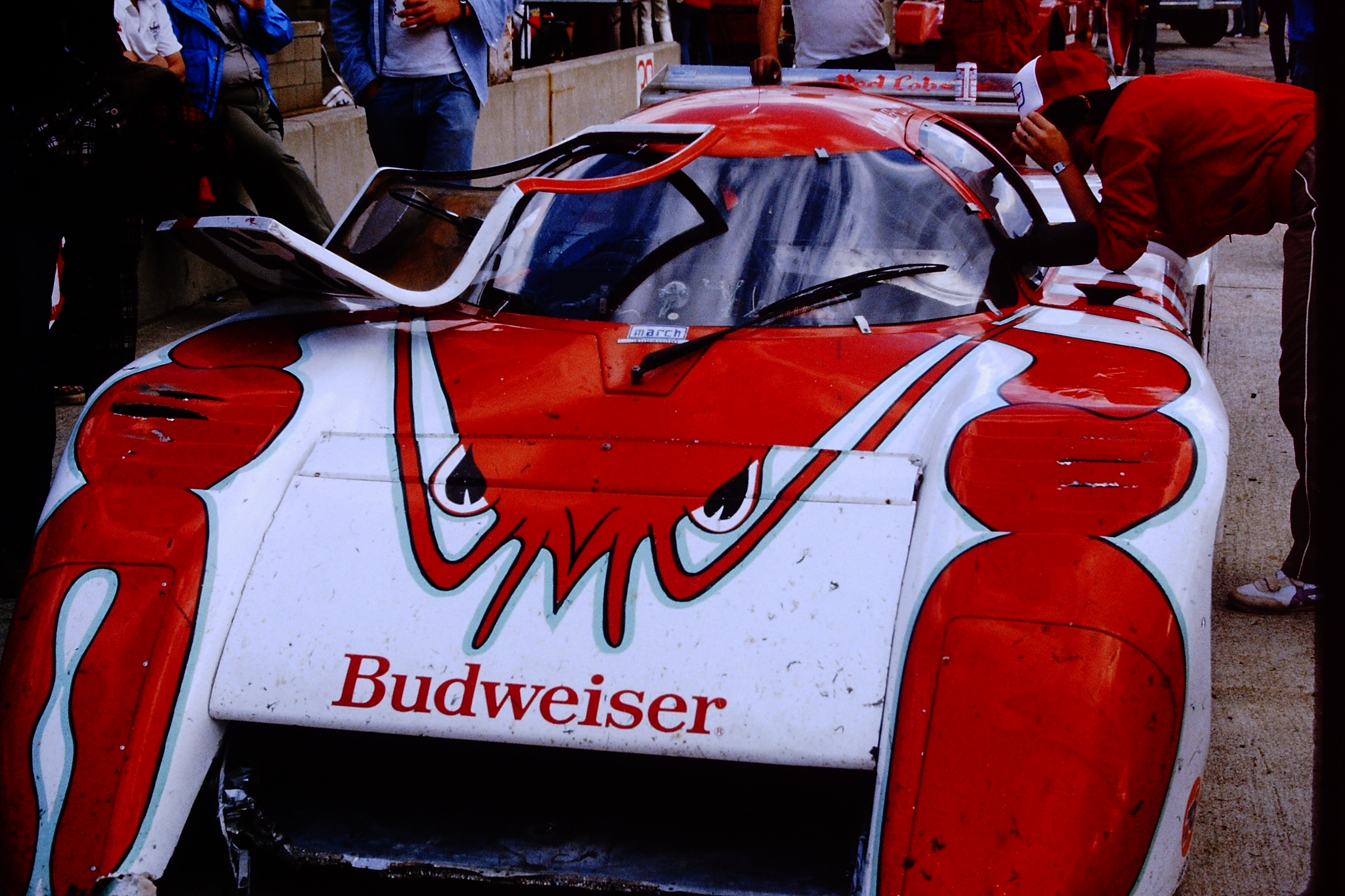 These 2 cars were fighting for the lead for a long time. They were the 2 fastest cars in the field. I forget what chassis the Apache car was but it was Chevy powered. It blew up late in the race and the Lowenbrau 962 driven by Derek Bell and Al Holbert went on to win.