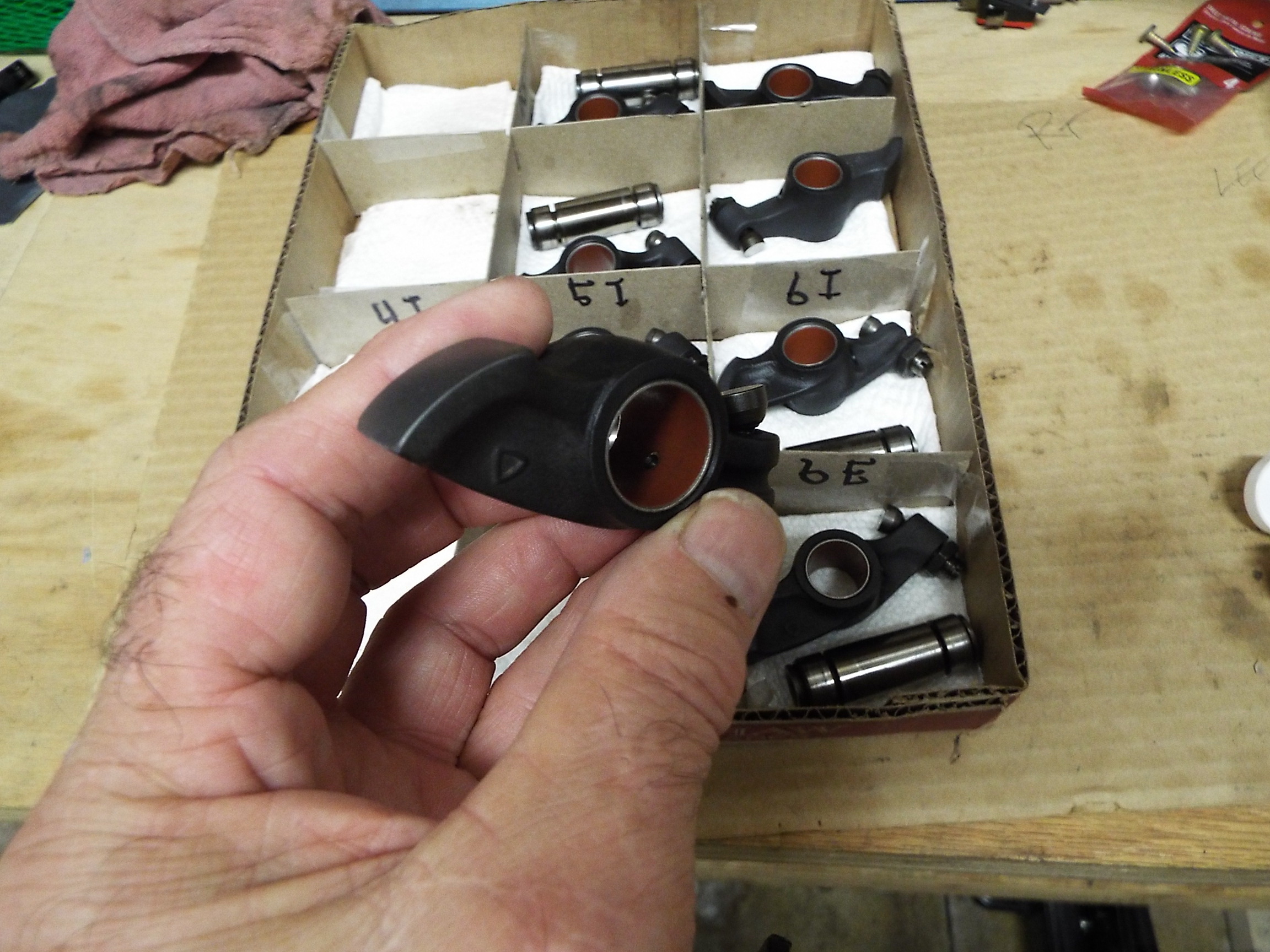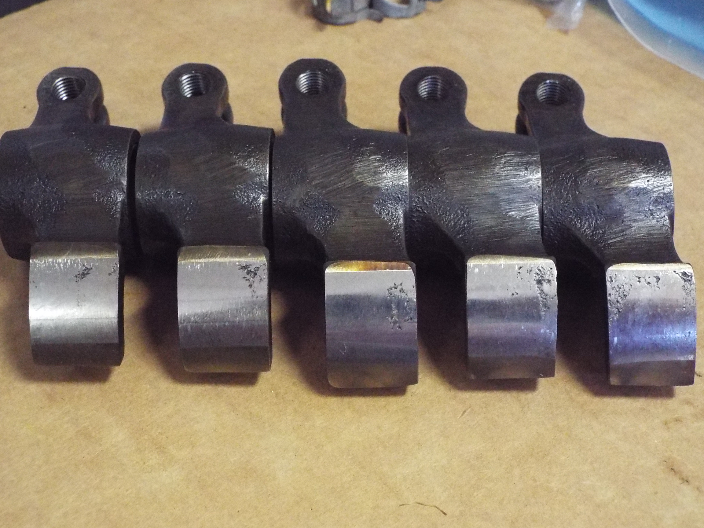 Thanks Larmo63! I have been following your thread as well and can relate to your ups and downs. I see your engine is going in soon. Best of luck!! As mentioned earlier my engine sat for years and that is not good it appears for rockers and cam shafts. No pic of cams (very very minor on cams but going to DC 40's anyway) and here is my worst case rockers.... Reconditioned rockers from Henry Schmidt via Ken @ 911 Vintage in Fallbrook CA. Apparently Henry is doing rockers for Nascar and has developed a great process. Quote Great build going well,did you find what caused the galling on the rocker arms? blocked oil spray rail or wrong oil maybe ?,would be interested to know,cheers. |