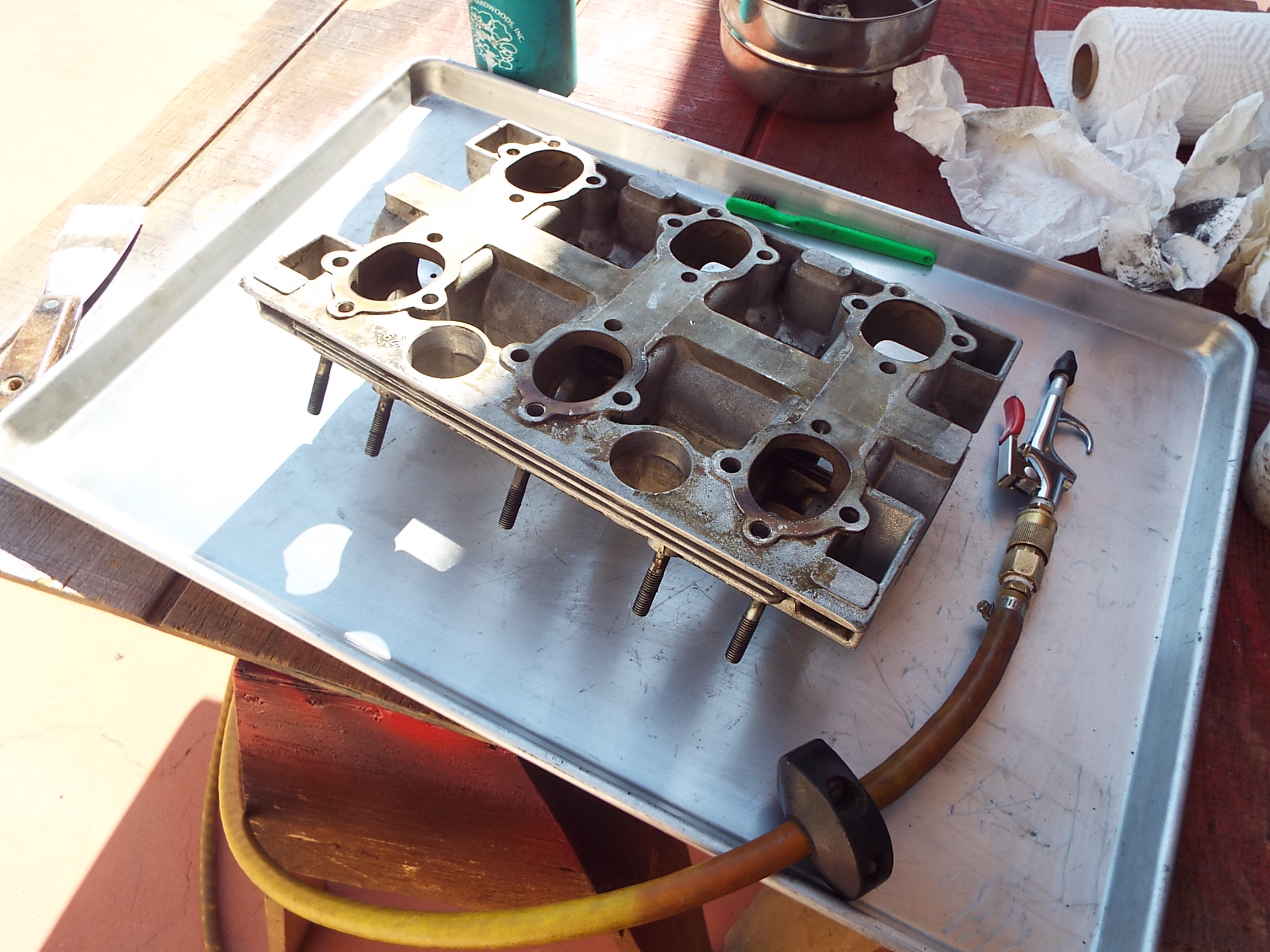 I learned that the carbs, although they had been serviced by one of the best, Performance Oriented, that the throttle shafts “might be OK to run”.