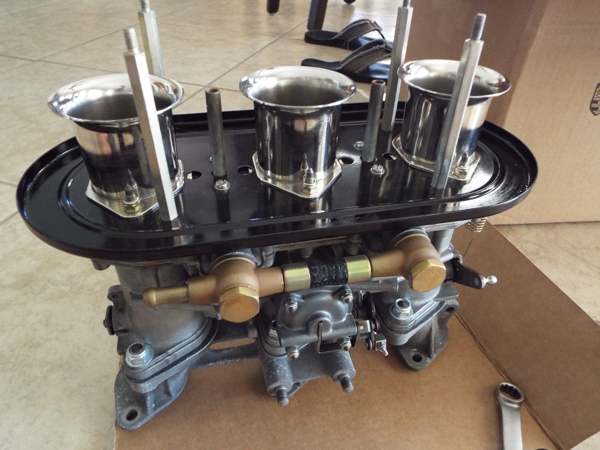 How this all came about is one day I decided to contact Performance Oriented via e-mail explain my situation and how I had acquired the carbs to see if he had any records since I had the SN’s and because I knew the PO had sent them there years ago. I wanted to know jetting and just general info if available. Shocking, Paul got back to me in like 45 minutes with a complete written rundown on the carbs. from July 2011 with venturis, jetting, emulsion tubes, main air correction jest and idle jets. And it was that very last sentence in his email where he said “they were very worn & I performed a ‘best effort’ to tune them” that really hit me. I called Paul we talked at length, very knowledgeable engineer type and very thorough. Paul explained that basically the “throttle shafts were at the end of their serviceable life” and they would be ok for a while but I might have trouble keeping them tuned. Once again something seemingly so ready to go had a problem. I didn’t feel comfortable with this information and felt it needed addressing. Back story here was that I had years ago a 69 912 with Solex’s that had worn throttle shafts and I fought those damn air leaks for way too long so I decided to nip this one in the bud. Here is what they looked like before sending off. They looked great! Well they had oxidized some. Here they are back all done. Completely re-jetted, oxidation gone, new long shafts, OEM throttle valves, and shaft couplings. Resealed and tested! Hopefully this will make for less sorting out. |