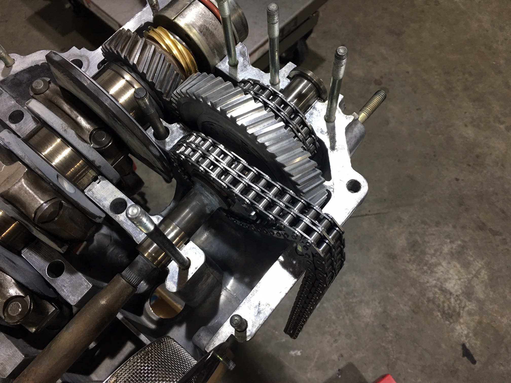 Thanks Larmo63! I have been following your thread as well and can relate to your ups and downs. I see your engine is going in soon. Best of luck!! As mentioned earlier my engine sat for years and that is not good it appears for rockers and cam shafts. No pic of cams (very very minor on cams but going to DC 40's anyway) and here is my worst case rockers.... Reconditioned rockers from Henry Schmidt via Ken @ 911 Vintage in Fallbrook CA. Apparently Henry is doing rockers for Nascar and has developed a great process. And if you have not met Ken he is a great guy and I always enjoy the drive up for the in person experience and a poke around his shop. Ugh! Another unplanned expense! Decided to do new timing chains. why not? Seems like everything else is being changed out! Simple operation and worth every penny of insurance. Basic stuff I know but there may be those out there that have not done some of it. In fact this was my first timing chain change out on a 3.0. Just feed the new chains through following the old chains out using the new master links and good to go! First off, you are doing a great job on this rebuild. I'm loving the attention to cleanliness which is key to a great build. Having spent hours cleaning parts on my 3.6 build for my 993, I really appreciate what you are doing. Second, comments on the pitted rockers. As you noted, this was probably due to leaving the engine with old oil inn it for a long period of time. Since one of the products of combustion is sulfurous acid, it's imperative that oil be changed on a regular basis......not necessarily mileage. As I've seen many places, oil needs to be changed annually or every xxxx miles; whichever comes first. So, the pitting is corrosion and the only way to prevent it is to keep the oil clean. That's why it is best to change out oil just before putting your car away for the winter months or for any extended storage period. Galling is another thing and is usually due to the poor formulations of today's oils. It's been explained ad nausium the cause of galling; but, the thing to remember is to run an oil that higher levels of ZDDP. You need at least 1300 ppm of that additive to prevent galling of the rockers. To get those levels, you need to run oils meant for off road or racing use. You can also get the correct level of ZDDP by running Mobil 1 V-Twin, which is their oil formulation for motorcycles. Since motorcycles do not need catalytic mufflers, the higher additive levels are permitted. On my teardown of a 3.6 motor from my 993, there was significant evidence of galling on a number of lobes of one of the cams. That was at 107k miles. All the bearings in that motor were perfect which is an indication that oil changes were proper. Research showed that galling failures are beginning to be seen in the air cooled motors. One question: Since you elected to split the case of your motor, why did you opt for split cam chains? There is nothing wrong with the chains that have a removable link, but the continuous chain eliminates the potential for the link coming loose. |