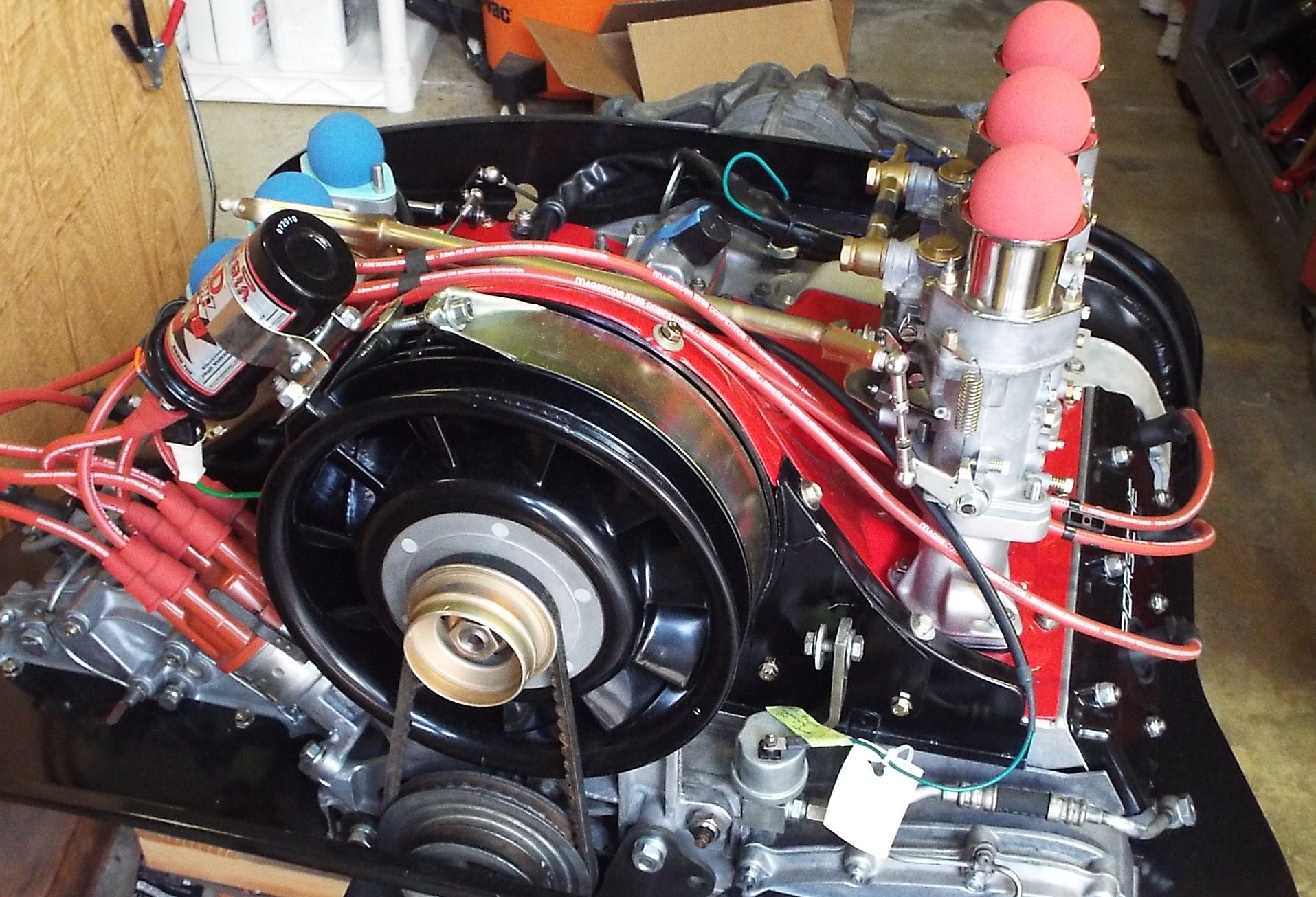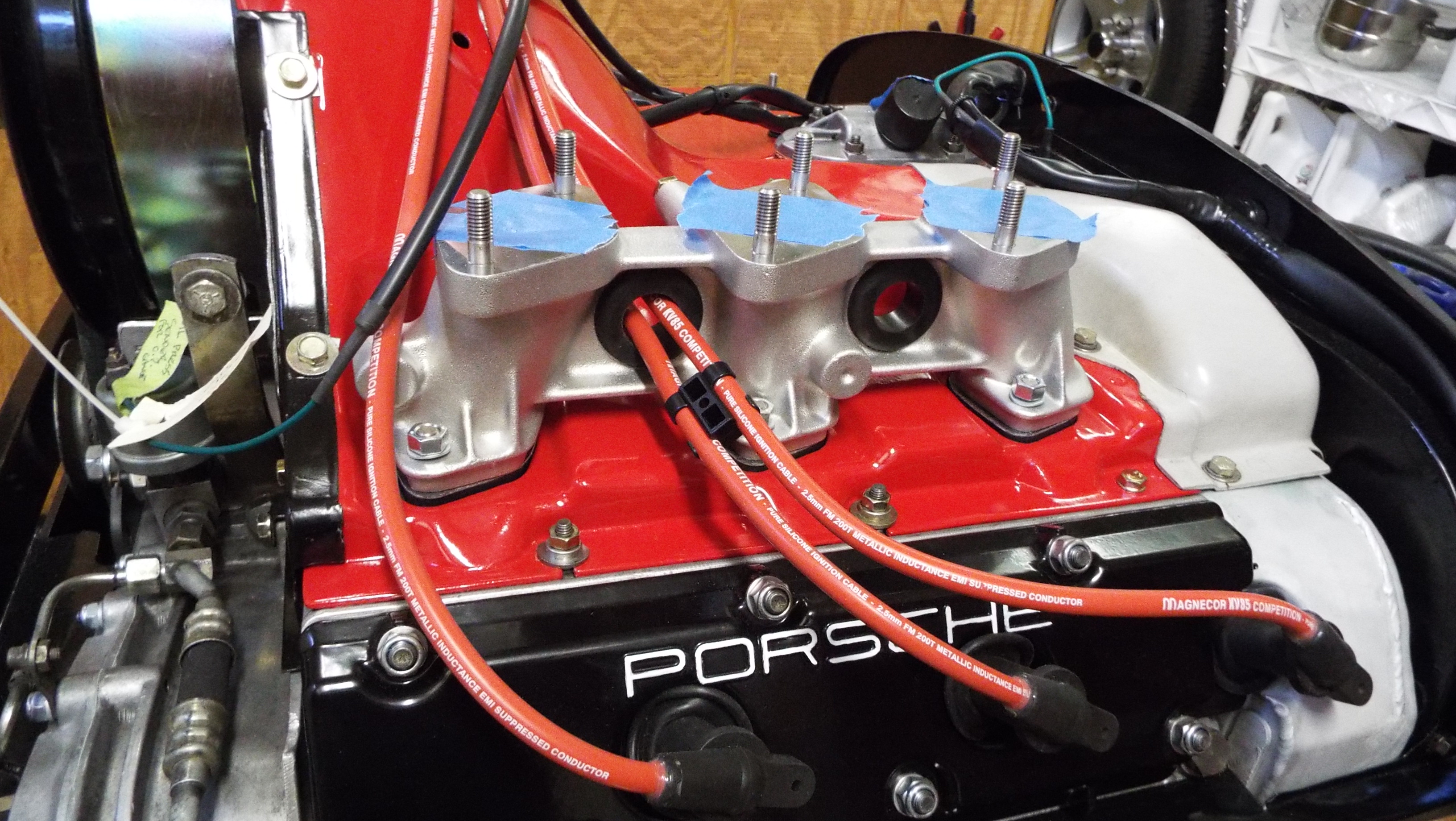 Much easier to see if you're doing this with the engine out, also guiding / nailing down the plug wires is easier too. |